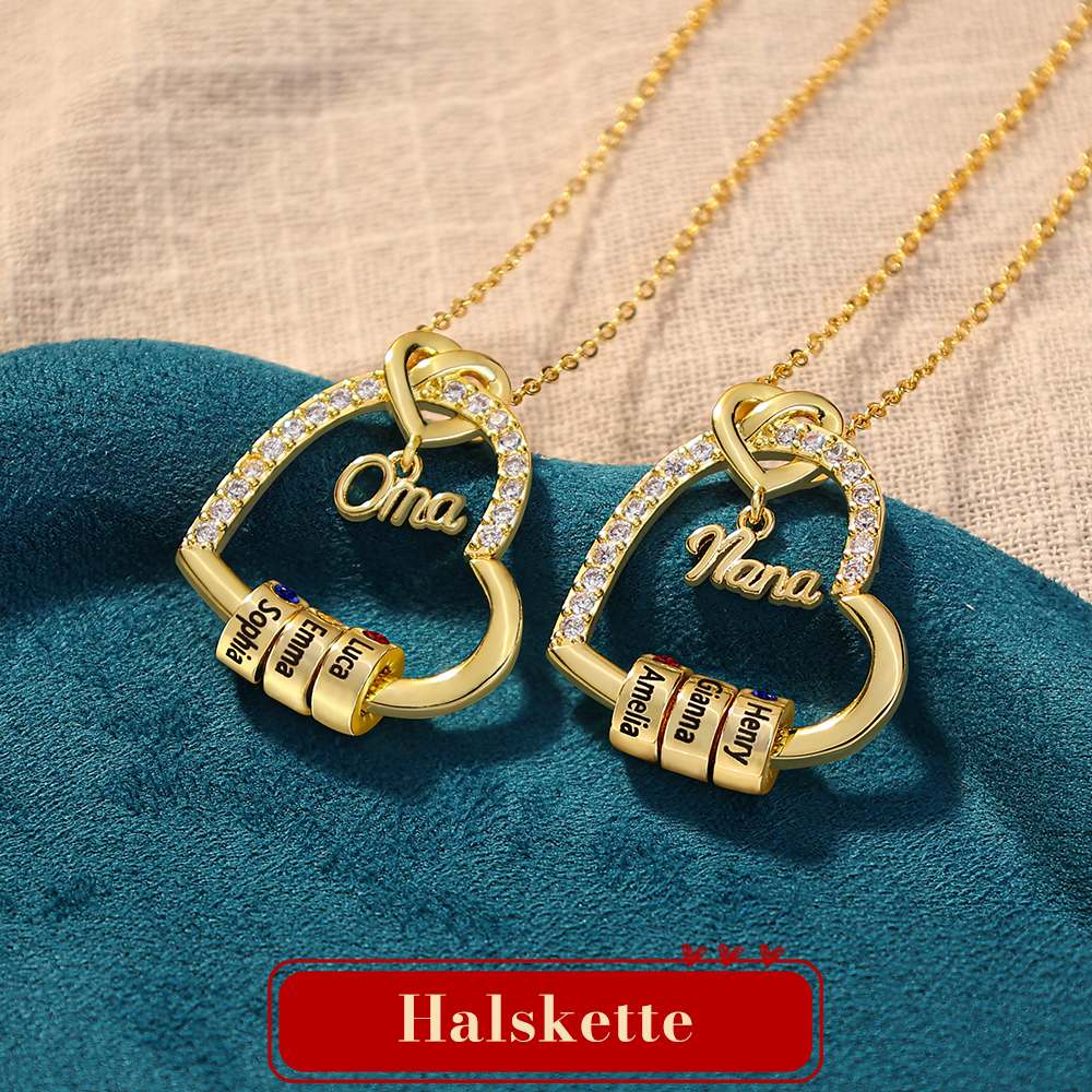 Personalisierte Doppelherz-Mama-Kette mit 1–5 Namen und Geburtssteinen