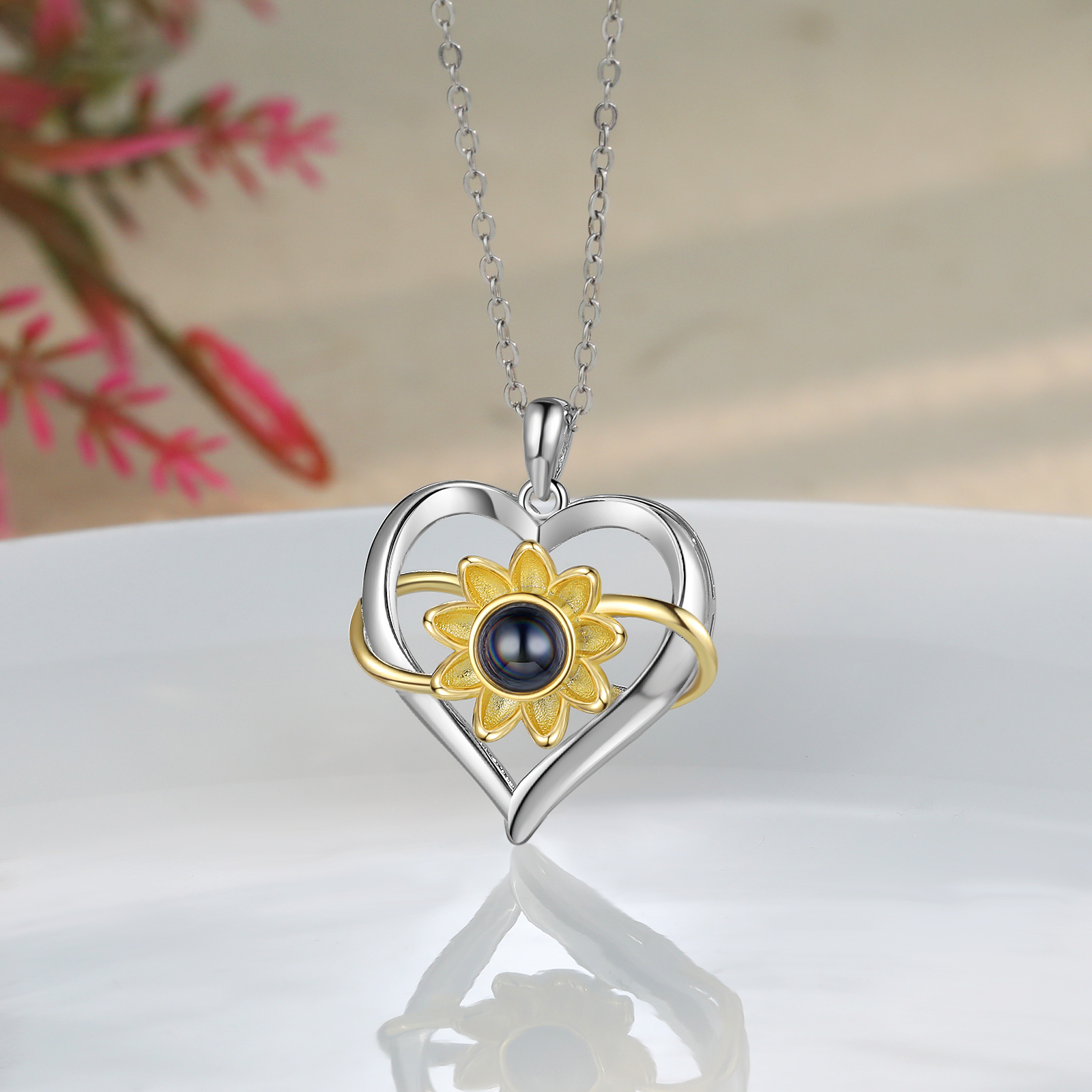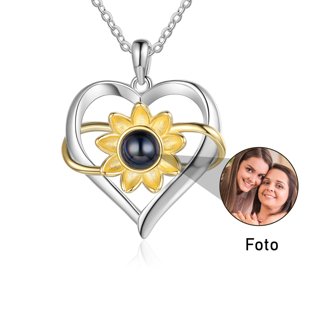 Personalisierte Foto Sonnenblume Herz Projektion Halskette