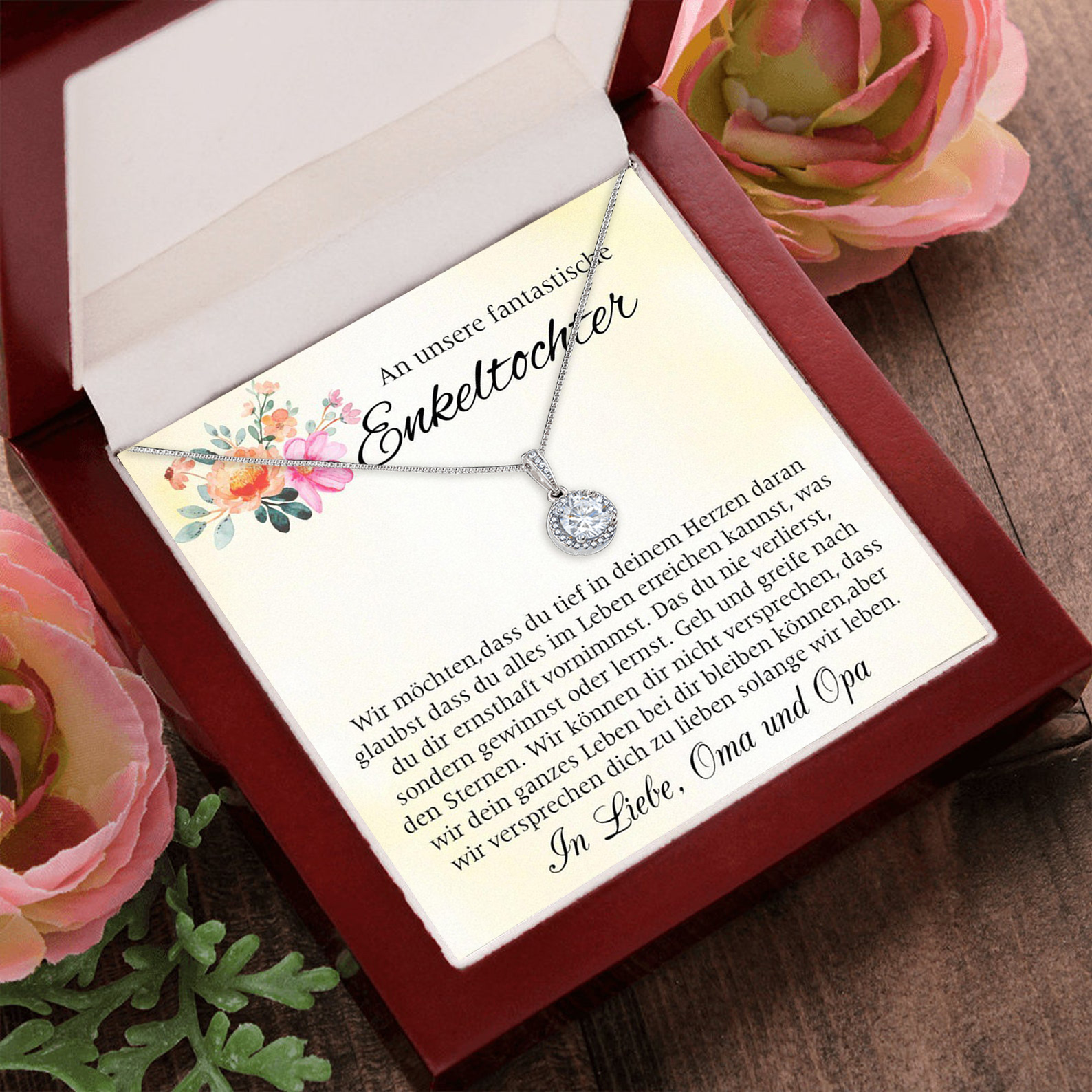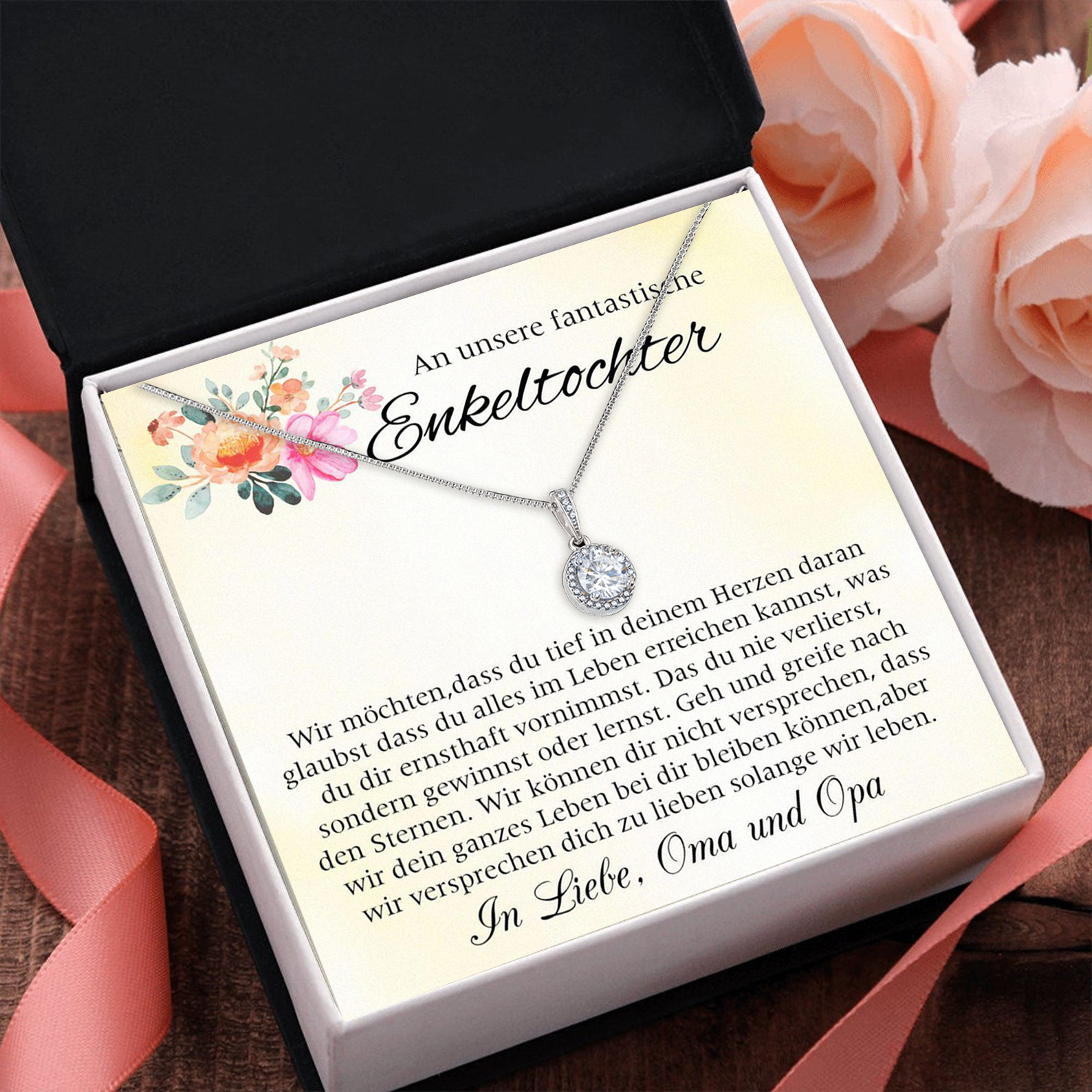 925 Silber rund Kristall Halskette-An unsere fantastische Enkeltochter-mit Nachrichtenkarte