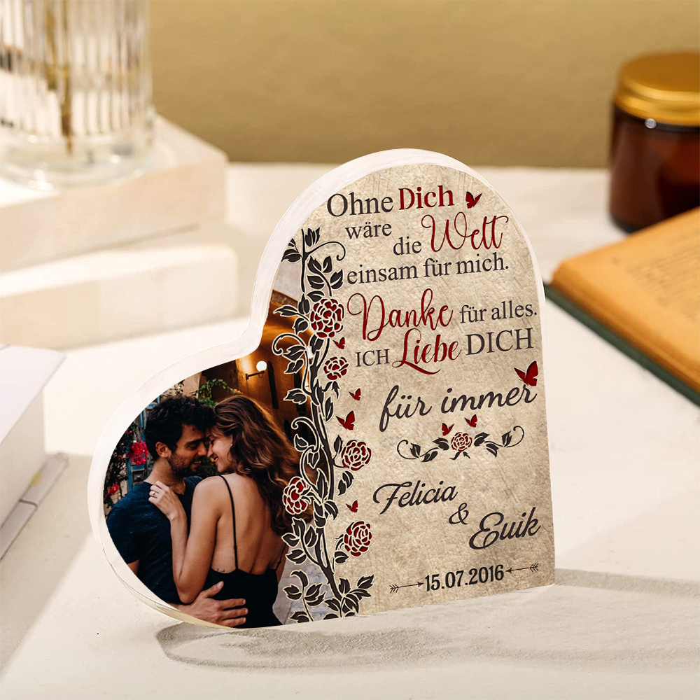 Personalisierte 2 Namen & Datum & Foto Acryl-Deko-Ohne dich wäre die Welt einsam für mich-Schreibtischdekoration für Paar