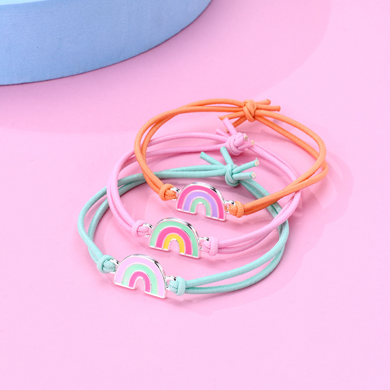 Regenbogen Gummiband Armbänder Set mit 3 Ketten-Für das Schulkind Mein Herz ist ganzen Tag bei euch-Schulanfang Geschenk mit Nachrichtenkarte