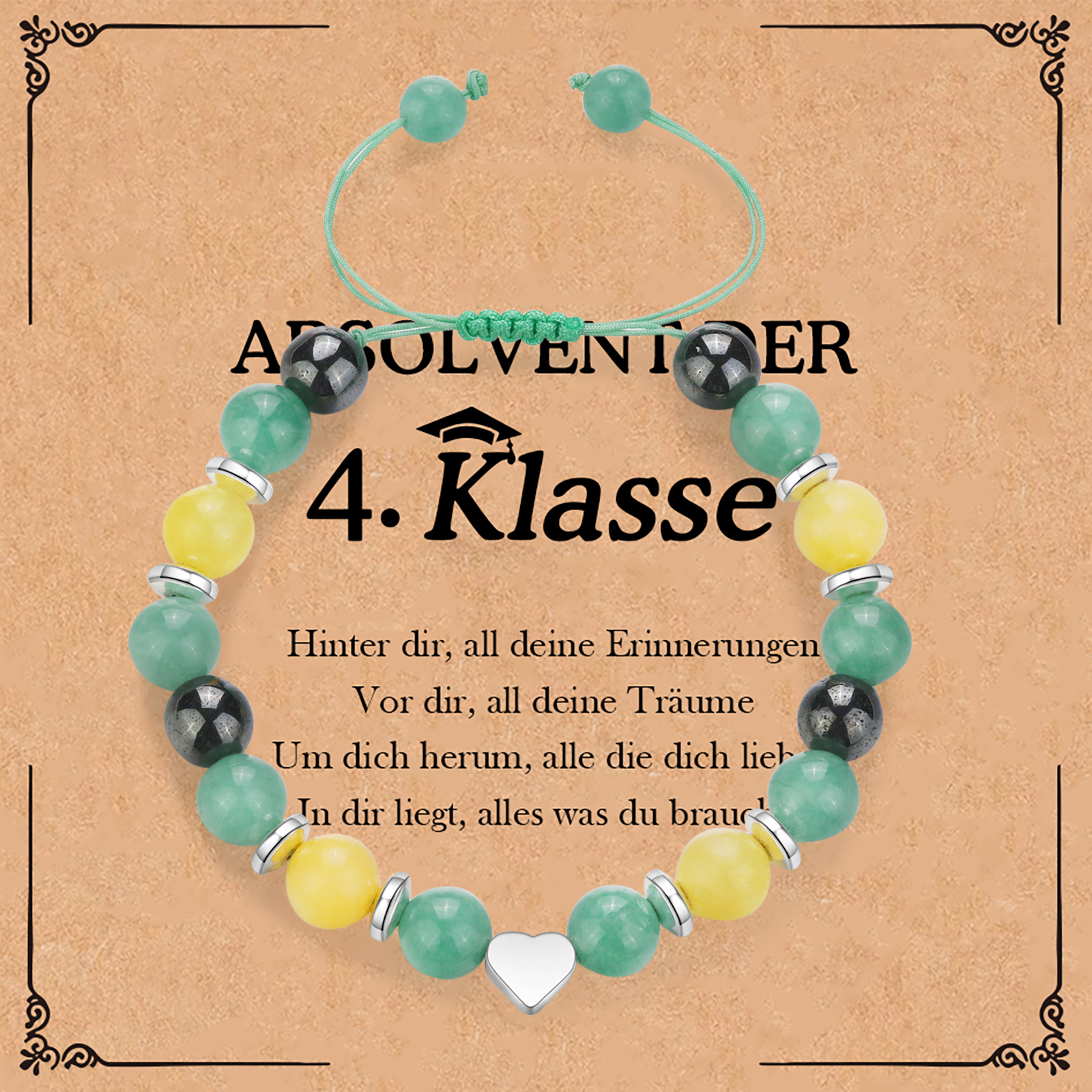 Grün Naturstein Handseil Armband-Absolvent der 4. Klasse-Abschluss Geschenk mit Nachrichtenkarte