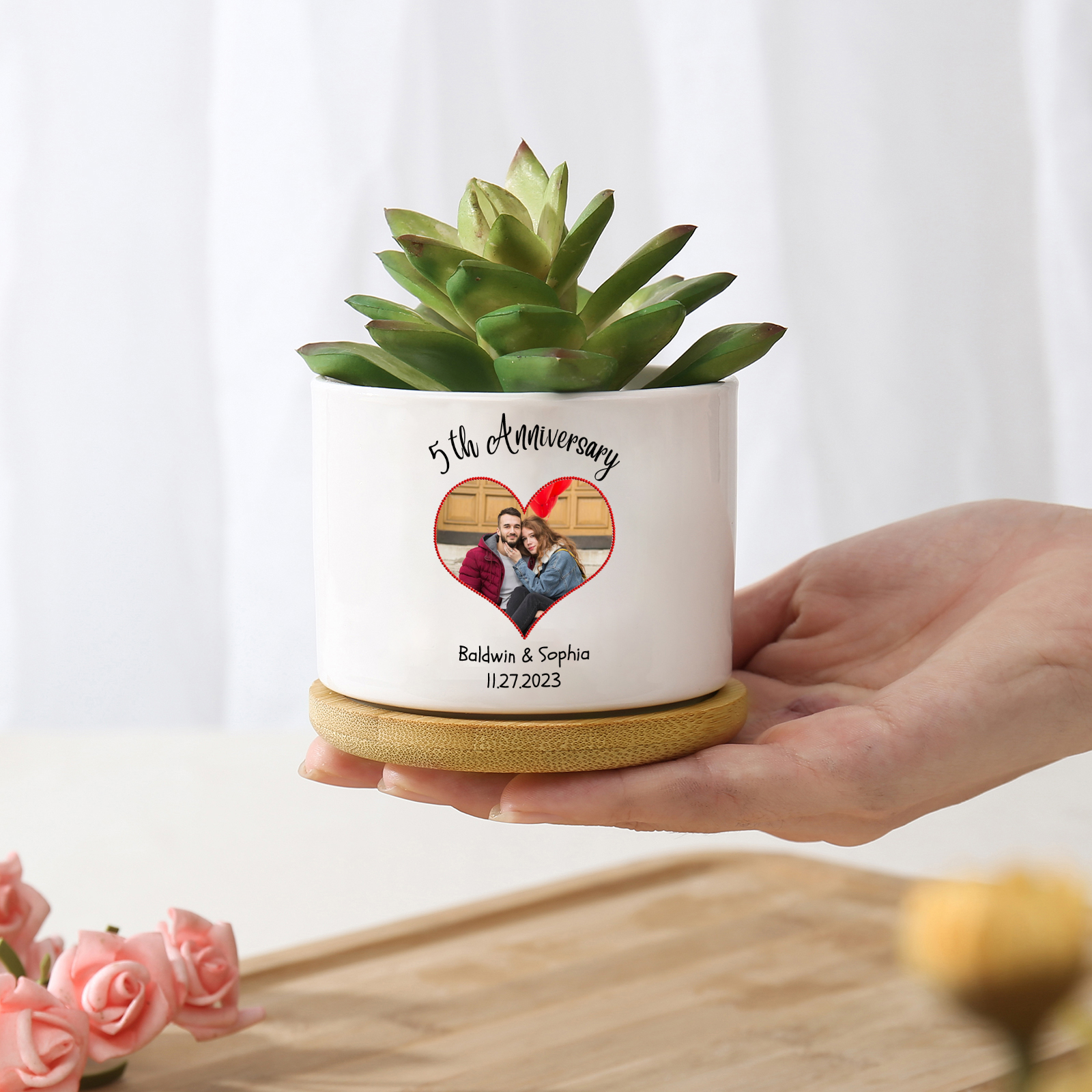 Personalisierbarere 2 Namen & Datum & Text & Foto Blumentopf für Paar