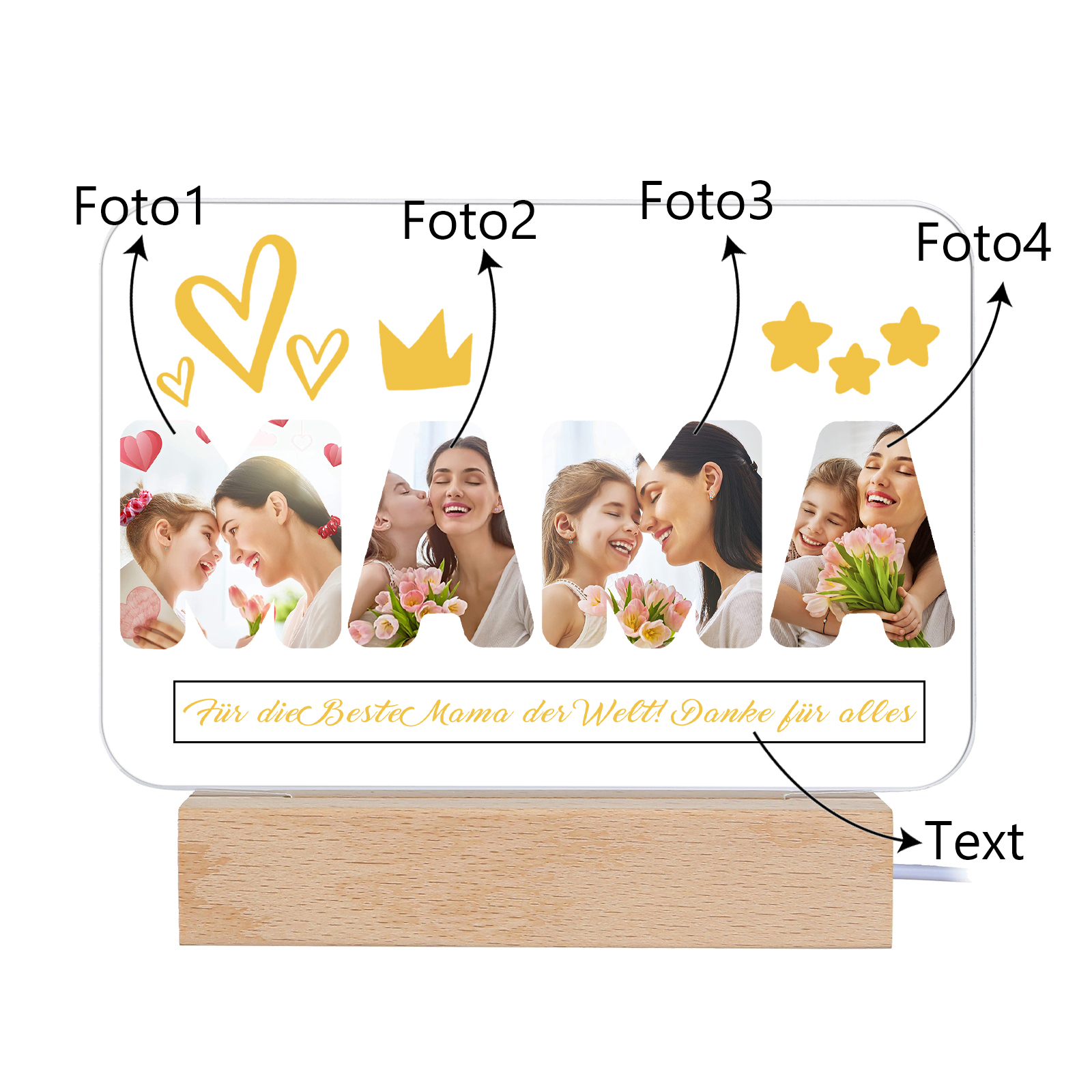 Personalisierte 4 Fotos & Text MAMA Nachtlicht Geschenk für Mutter