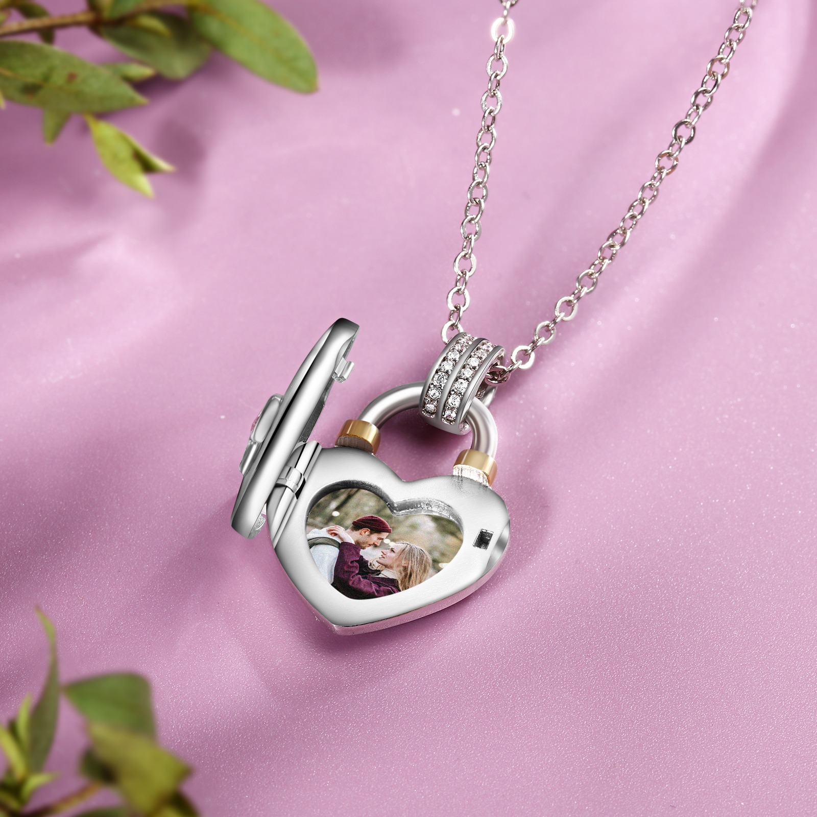Personalisierte Herz Schloss Foto Halskette mit 1 Geburtsstein