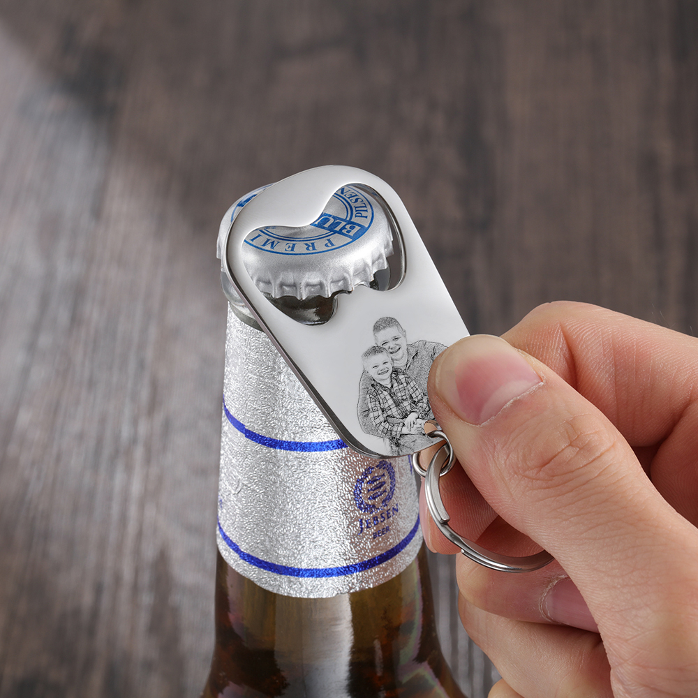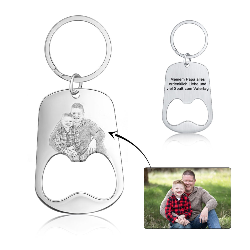 Personalisierte Foto & Wunschetext Edelstahl Schlüsselanhänger mit Flaschenöffner