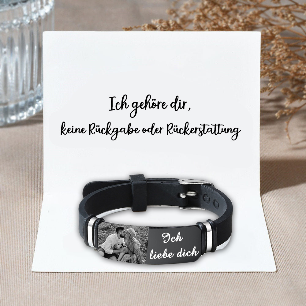 Herren Personalisiertes Foto & Text Armband-Ich gehöre Ihnen, keine Rückgabe oder Rückerstattung-Geschenk mit Nachrichtenkarte