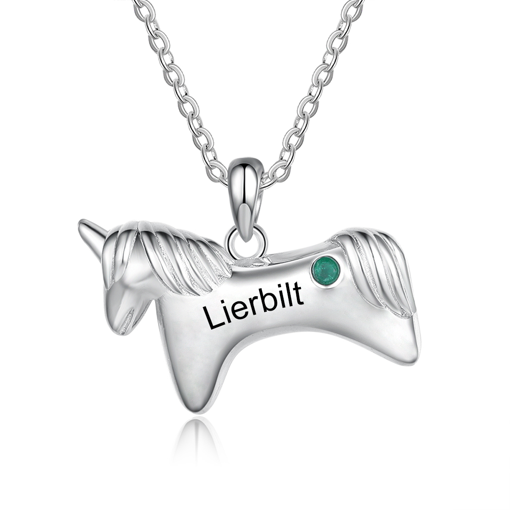 Personalisierte Halskette mit Geburtsstein Einhorn Halskette