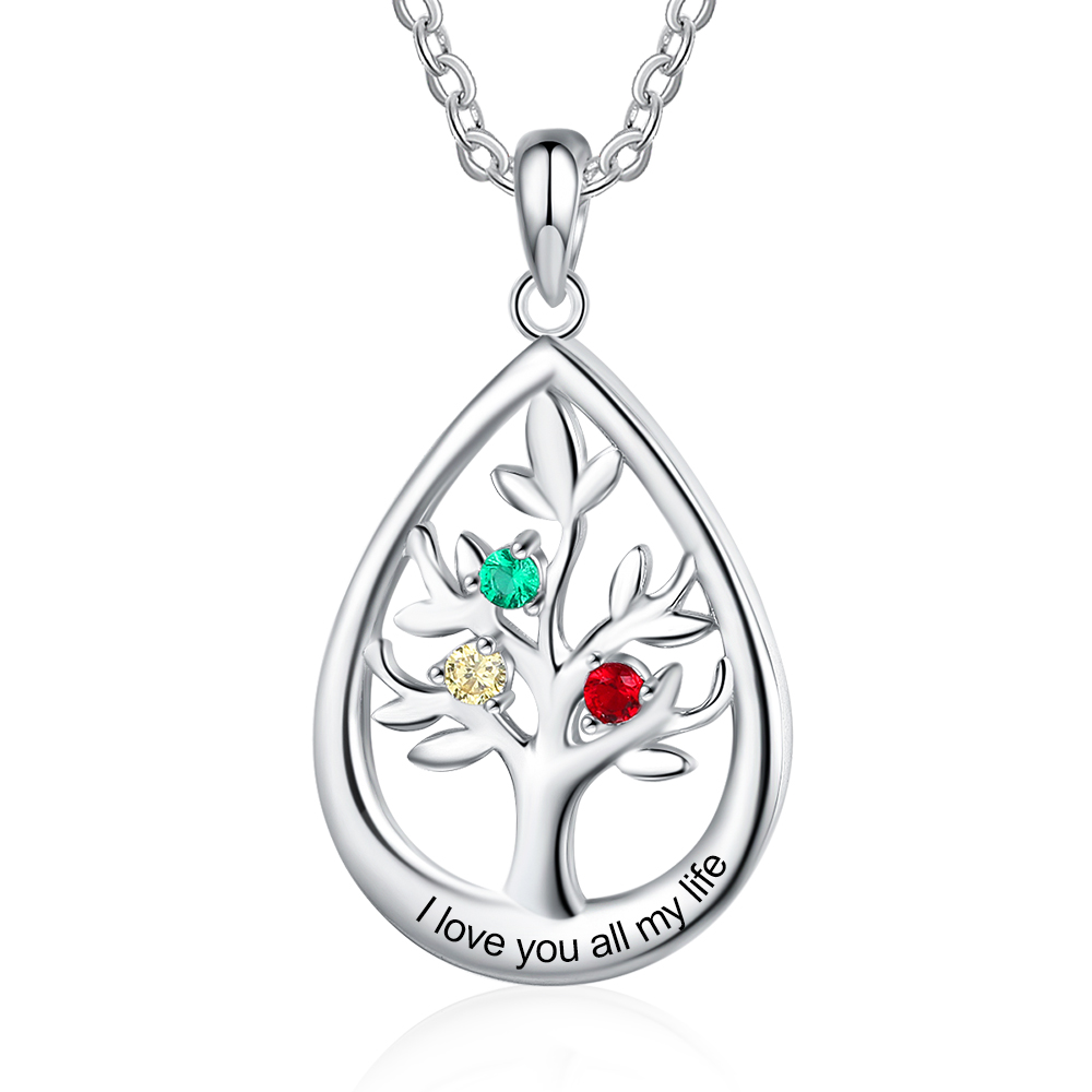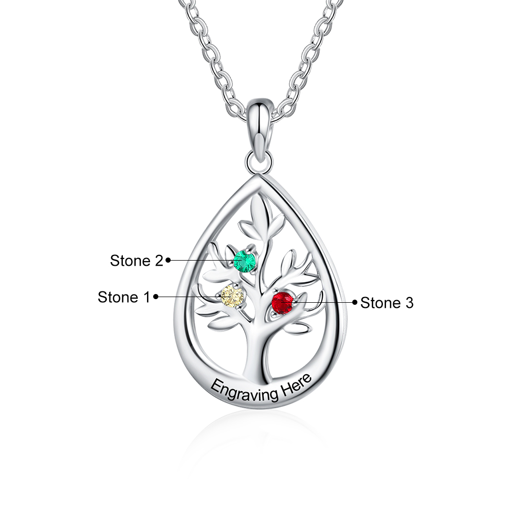 Personalisierte Stammbaum-Halskette mit 3 Geburtssteinen