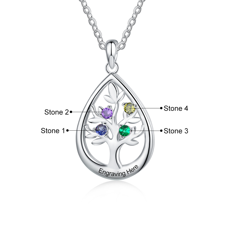 Personalisierte Stammbaum-Halskette mit 4 Geburtssteinen