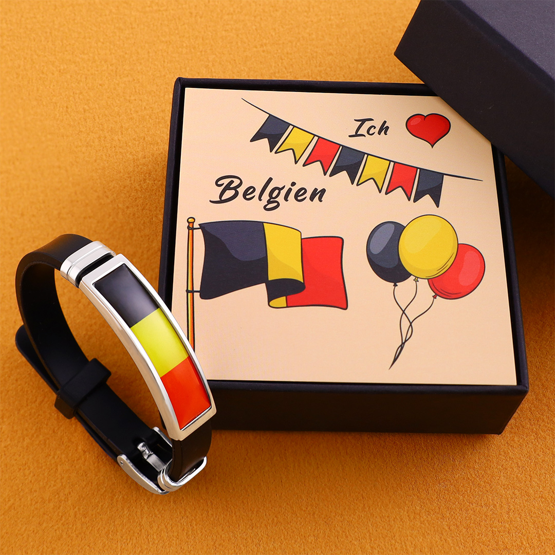 Silikonarmband mit Muster zum belgischen Nationalfeiertag mit Geschenkkarte Geschenkbox