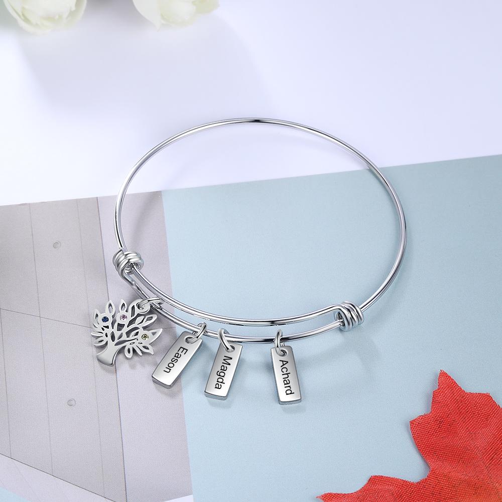 3 Namensgravuren Armband mit Familienstammbaum 3 Geburtssteine