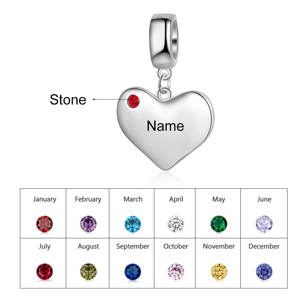 925 Sterling Silber Ein herzförmiges Armband mit 1 Name und 1 Geburtsstein