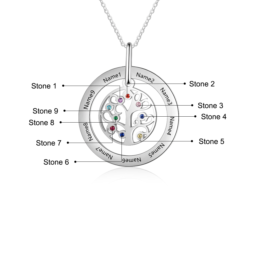9 Namensgravuren Familienstammbaum Halskette mit Geburtsseine