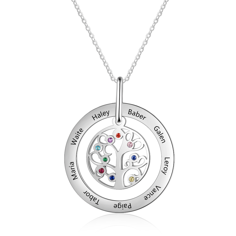 Familienstammbaum Anhänger Halskette mit 2 Namensgravuren Geburtssteine