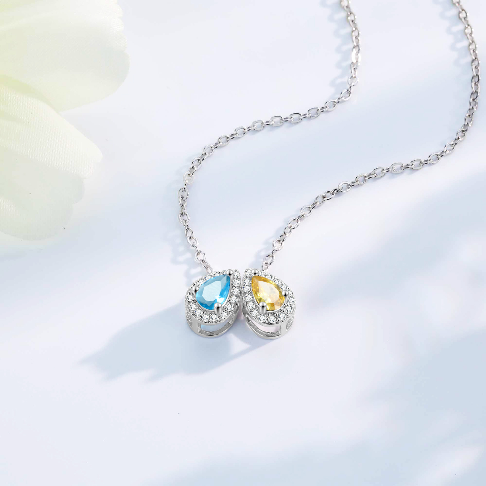 Personalisierte 2 Geburtssteine Tropfenform Halskette mit Zirkonia