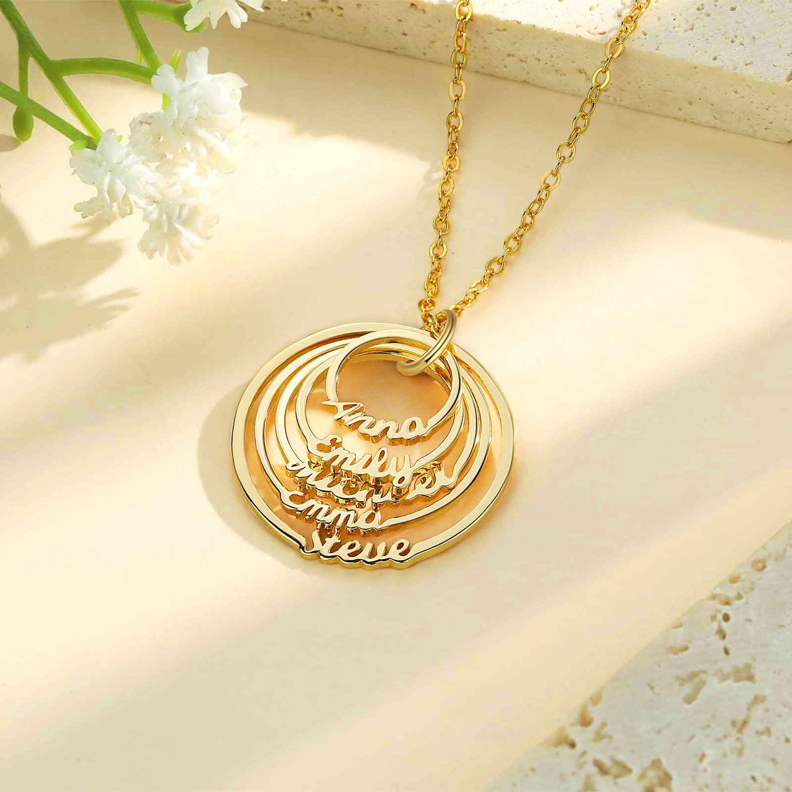Personalisierte 5 Namen mit Gravuren Rund Halskette