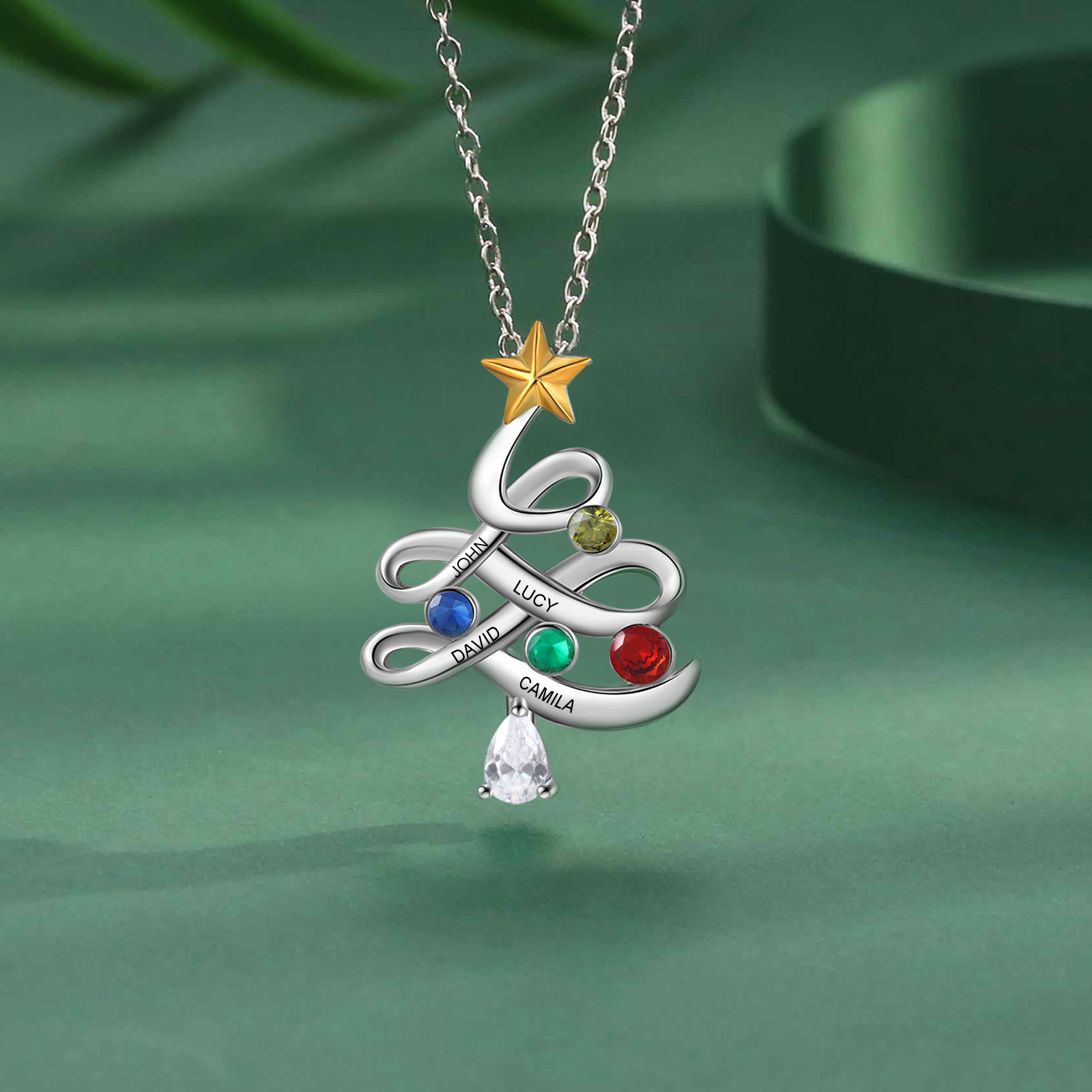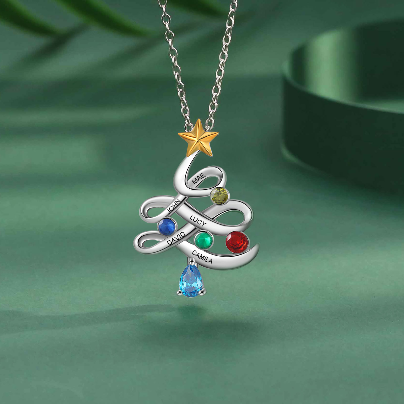 Personalisierte 5 Namen Weihnachtsbaum Halskette mit Geburtssteinen