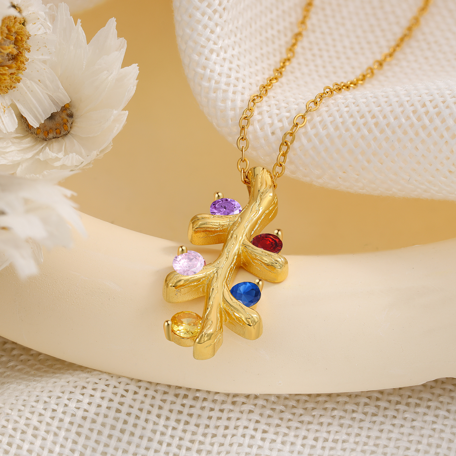 Personalisierte 4 Namen Weihnachtsbaum Halskette mit Geburtssteinen