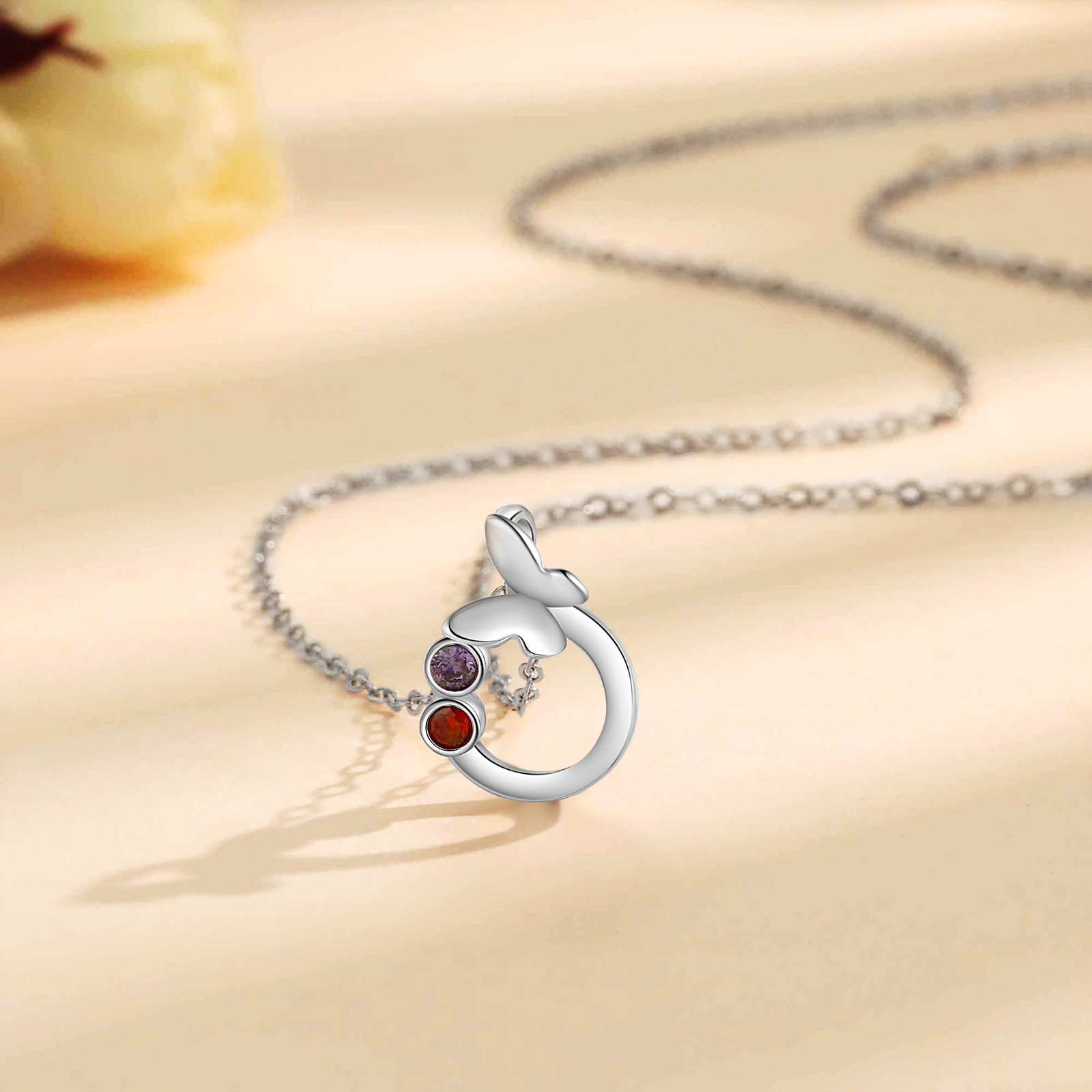 Personalisierte 2 Geburtssteine Schmetterling Kreis Halskette