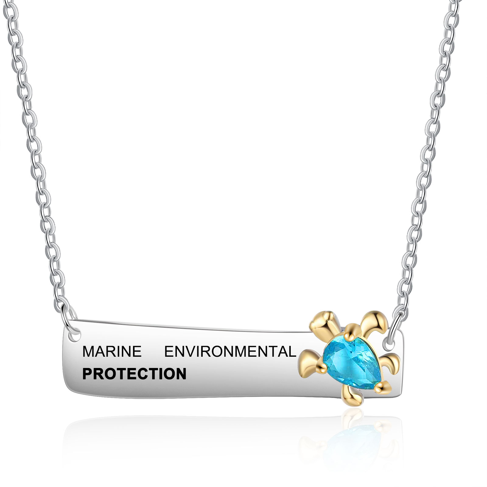 Personalisierter Text & Geburtsstein Meeresschildkröte Halskette