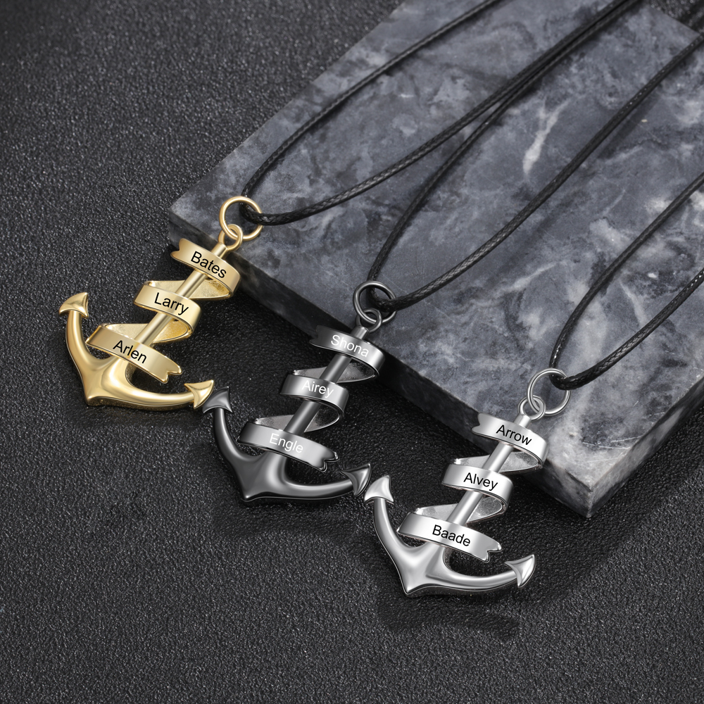 925 Sterling Silber Personalisierbar 3 Namen Anker Halskette