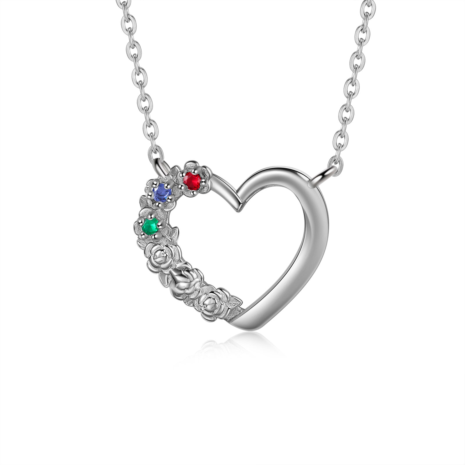 Personalisierte 3 Geburtssteine Herz Rose Halskette für Großmutter