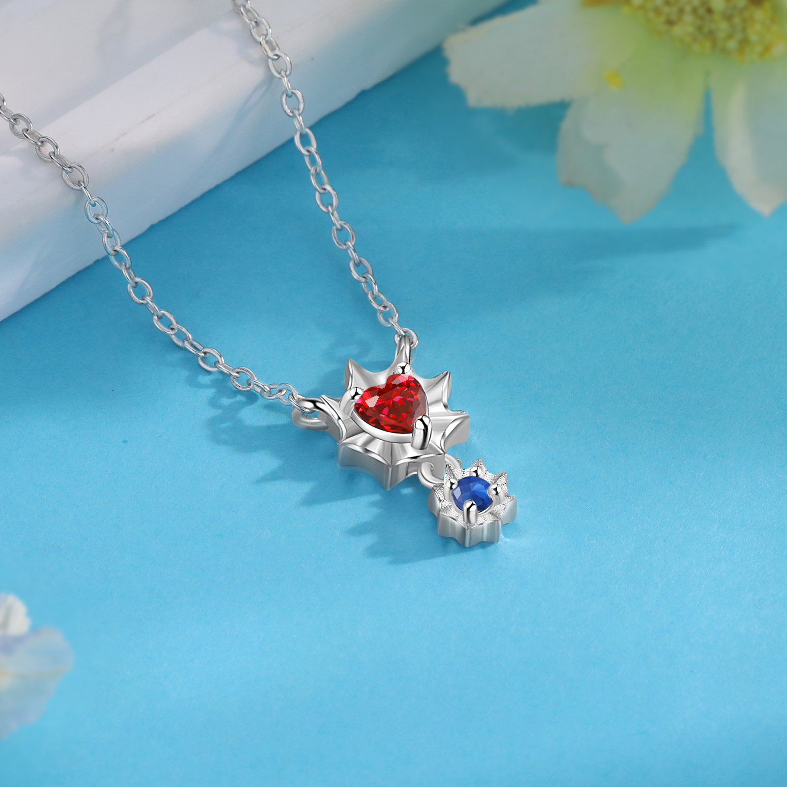 Personalisierte 2 Namen Herz Zirkonia Halskette mit 2 Geburtssteinen