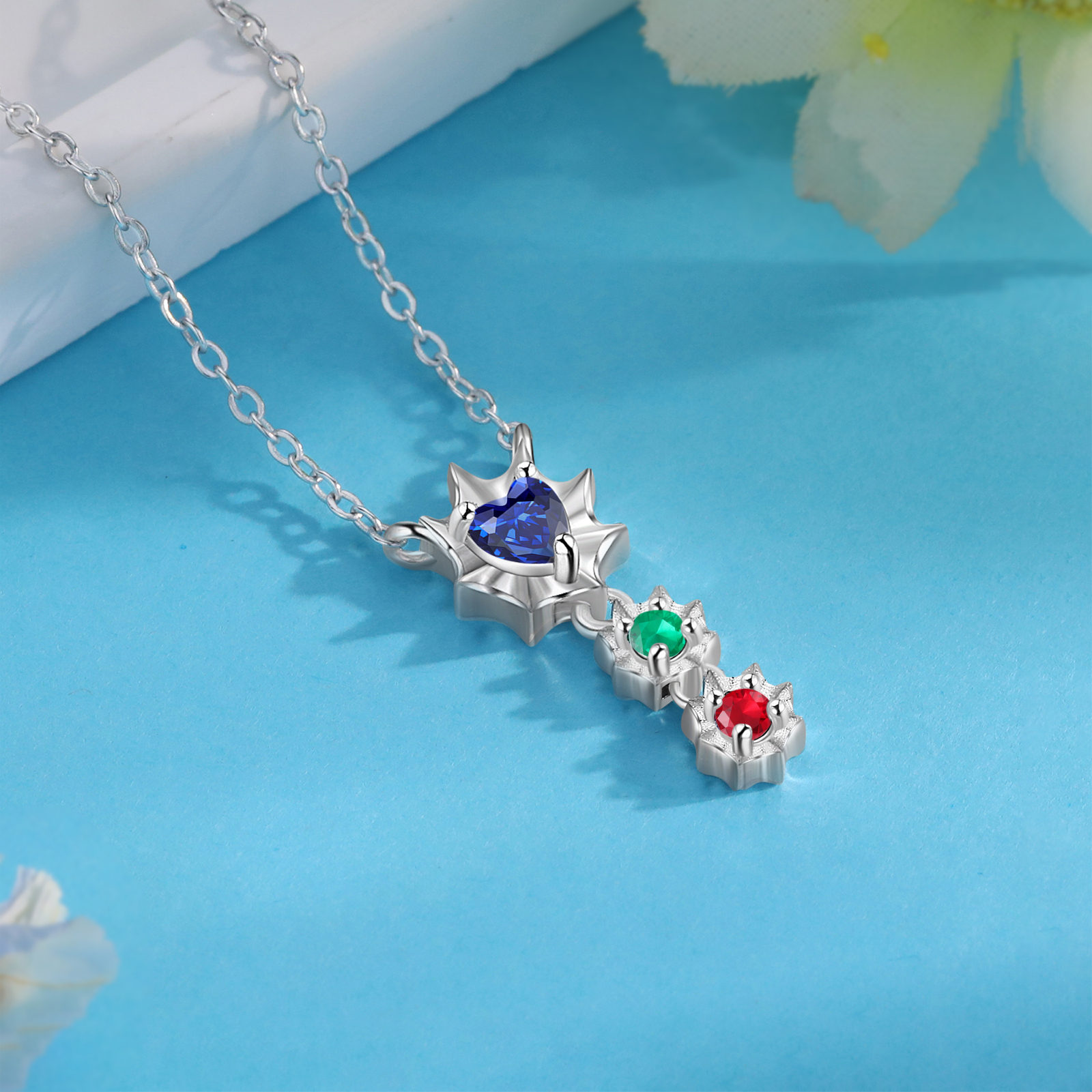 Personalisierte 3 Namen Herz Zirkonia Halskette mit 3 Geburtssteinen