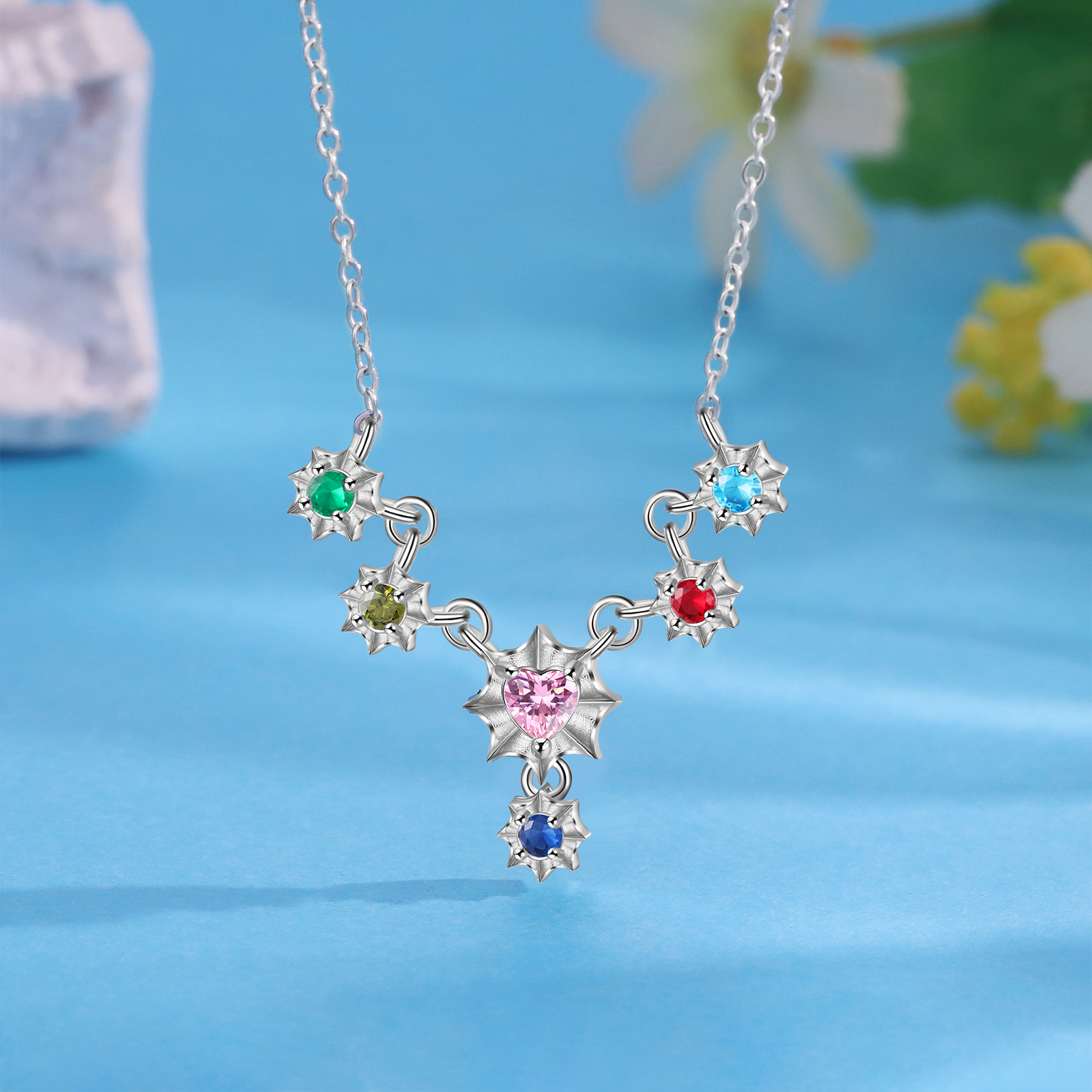 Personalisierte 6 Namen Halskette mit Herz Geburtssteinen