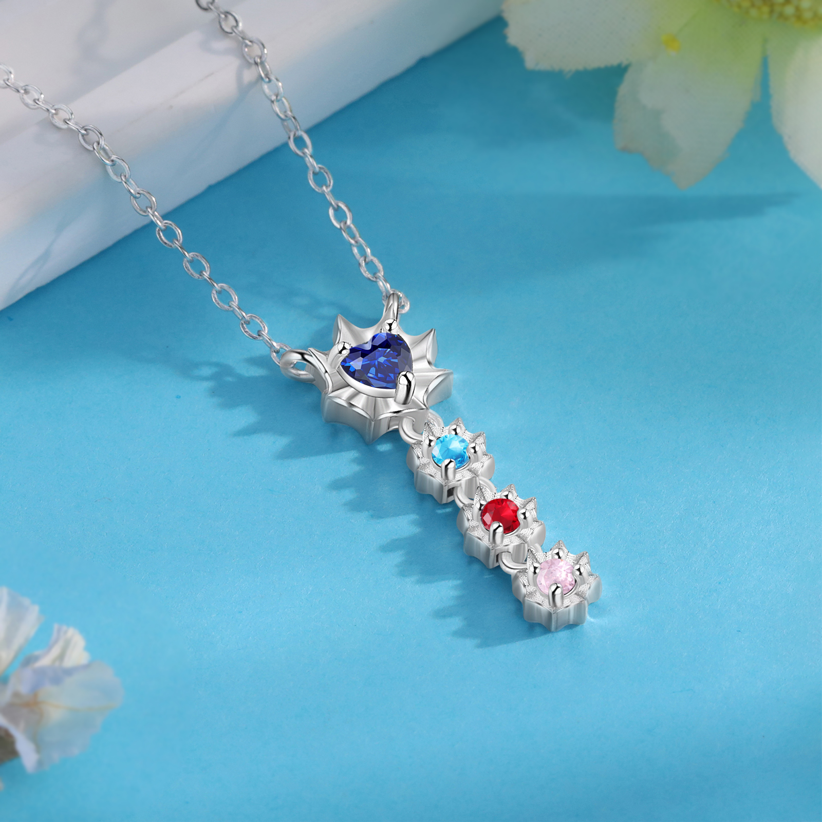 Personalisierte 4 Namen Herz Zirkonia Halskette mit 4 Geburtssteinen