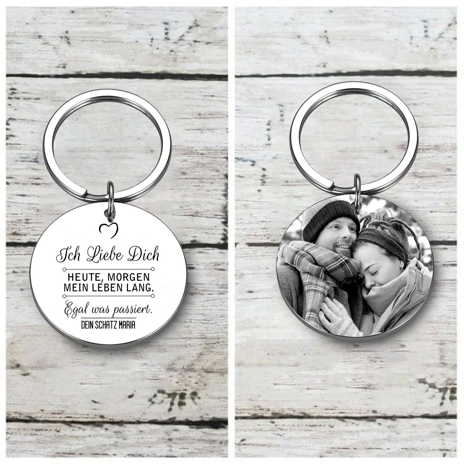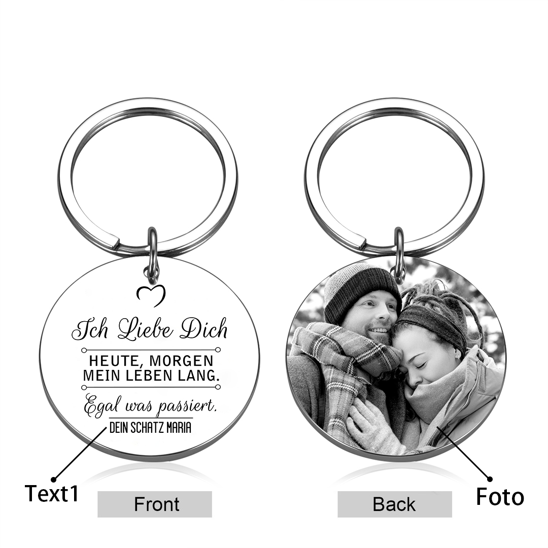 Personalisierbares Foto & Text Rund Metall -Ich liebe dich- Schlüsselanhänger für Paare