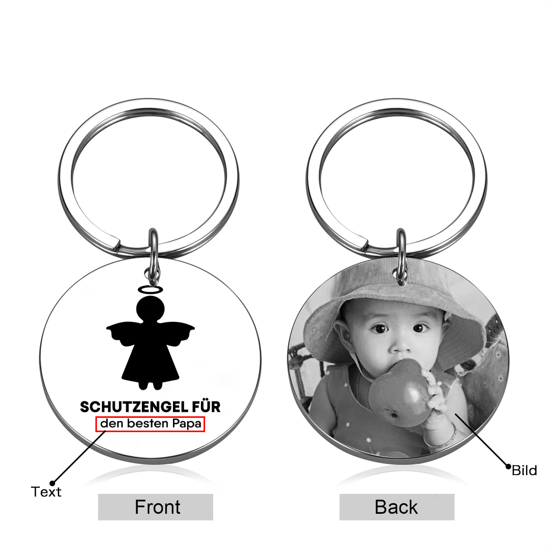 Personalisierbares Foto & Text Rund Metall-Schutzengel für...-Schlüsselanhänger für Familie