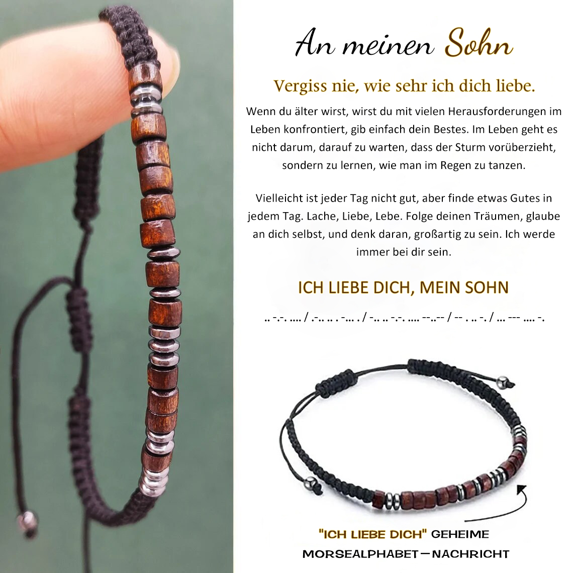 Morsealphabet Armband Ich Liebe Dich An meinen Sohn Geschenk mit Nachrichtenkarte Größenverstellbar