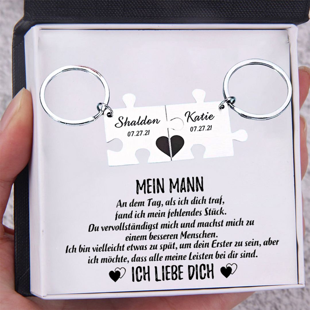 Personalisierbare 2 Namen & Datum Paar Puzzle Schlüsselanhänger-Mein Mann Du machst mich zu einem besseren Menschen-Geschenk mit Nachrichtenkarte