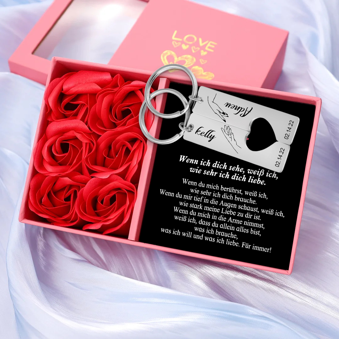 Personalisierbar Datum & 2 Buchstaben Paar Schlüsselanhänger-Wenn ich dich sehe, weiß ich, wie sehr ich dich liebe-Geschenk mit Nachrichtenkarte