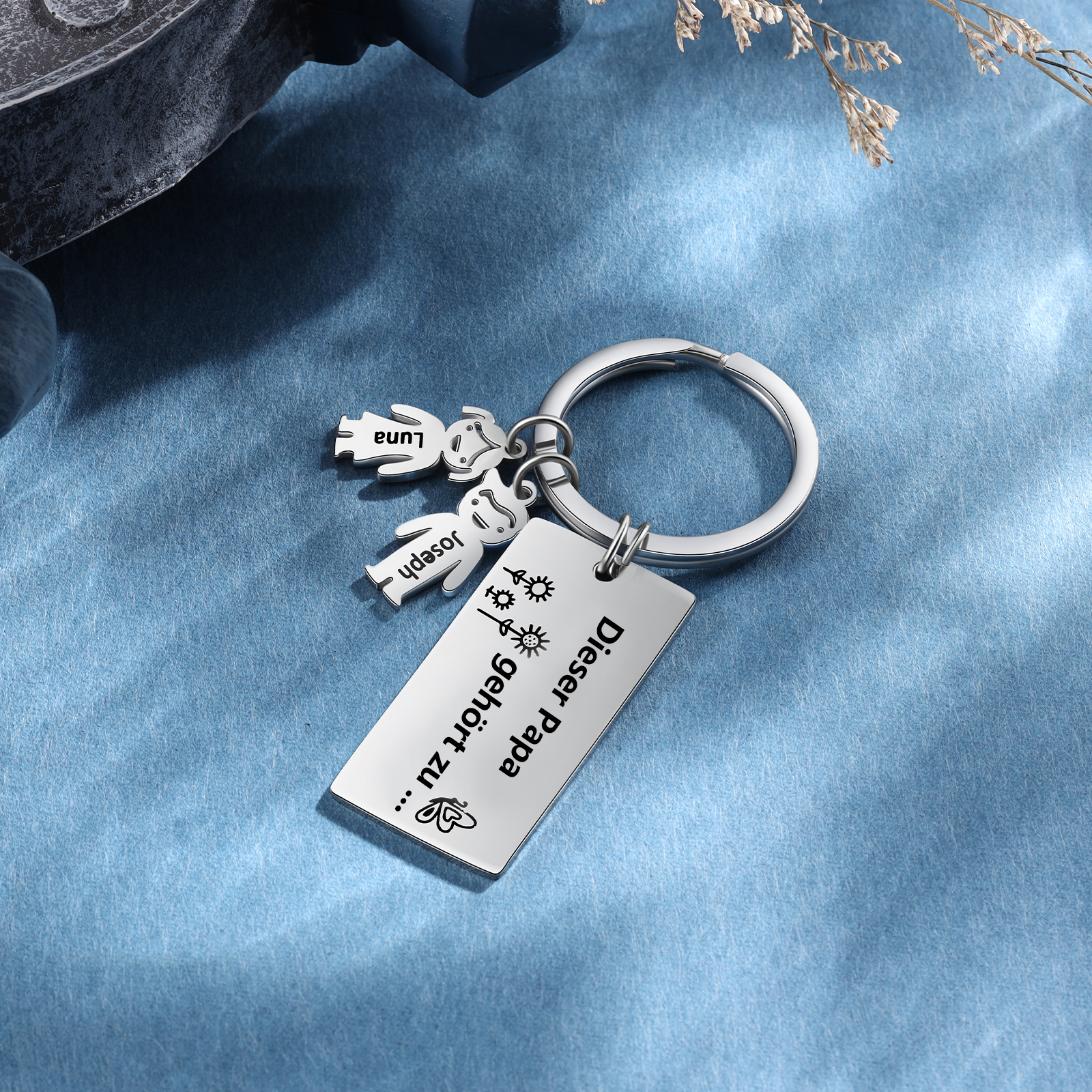 Welche Anpassungsoptionen bieten Sie für die personalisierten Schlüsselanhänger zum Vatertag an?