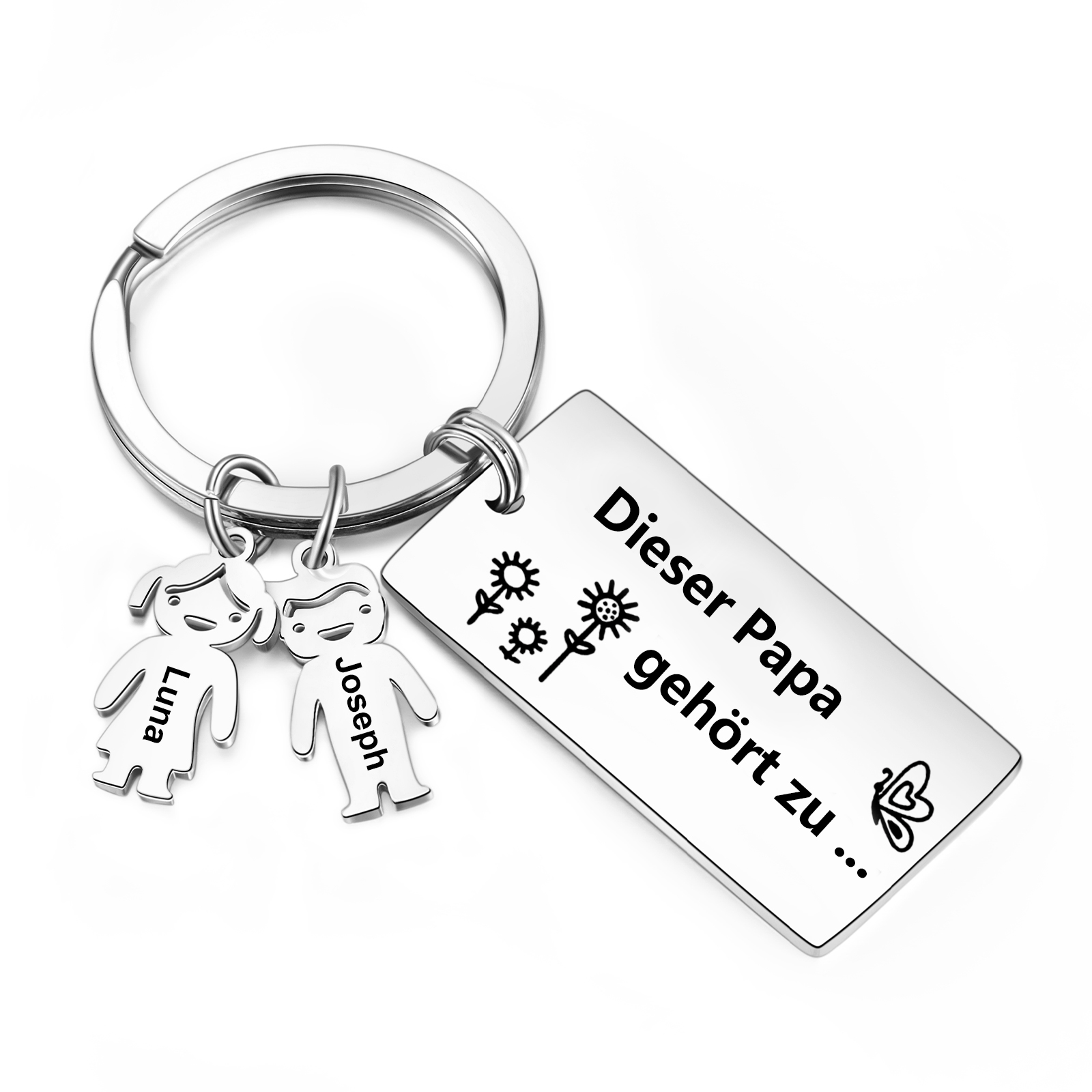 Personalisierter 2 Kinder Namen Schlüsselanhänger- Lieber Papa-Geschenk mit Nachrichtenkarte