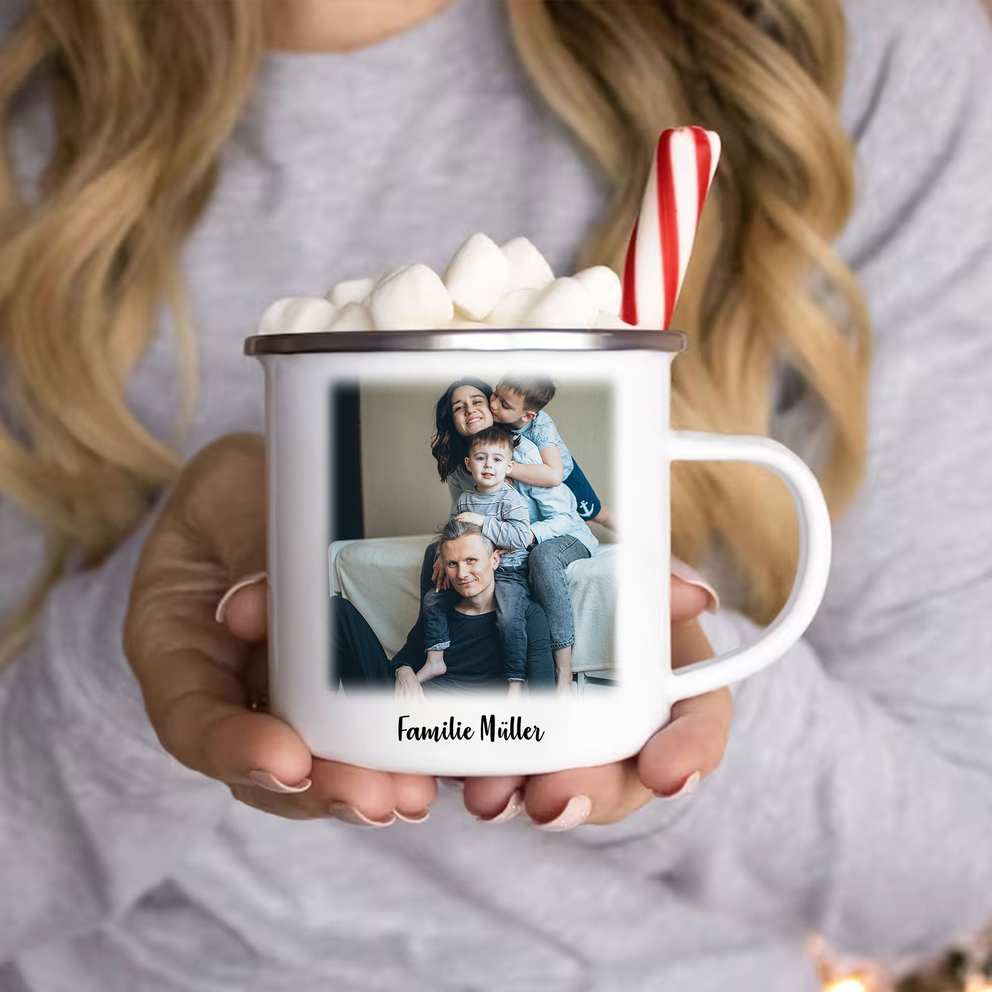 Emaille Tasse-Personalisierter Text & Foto Emaille Becher-für Familie