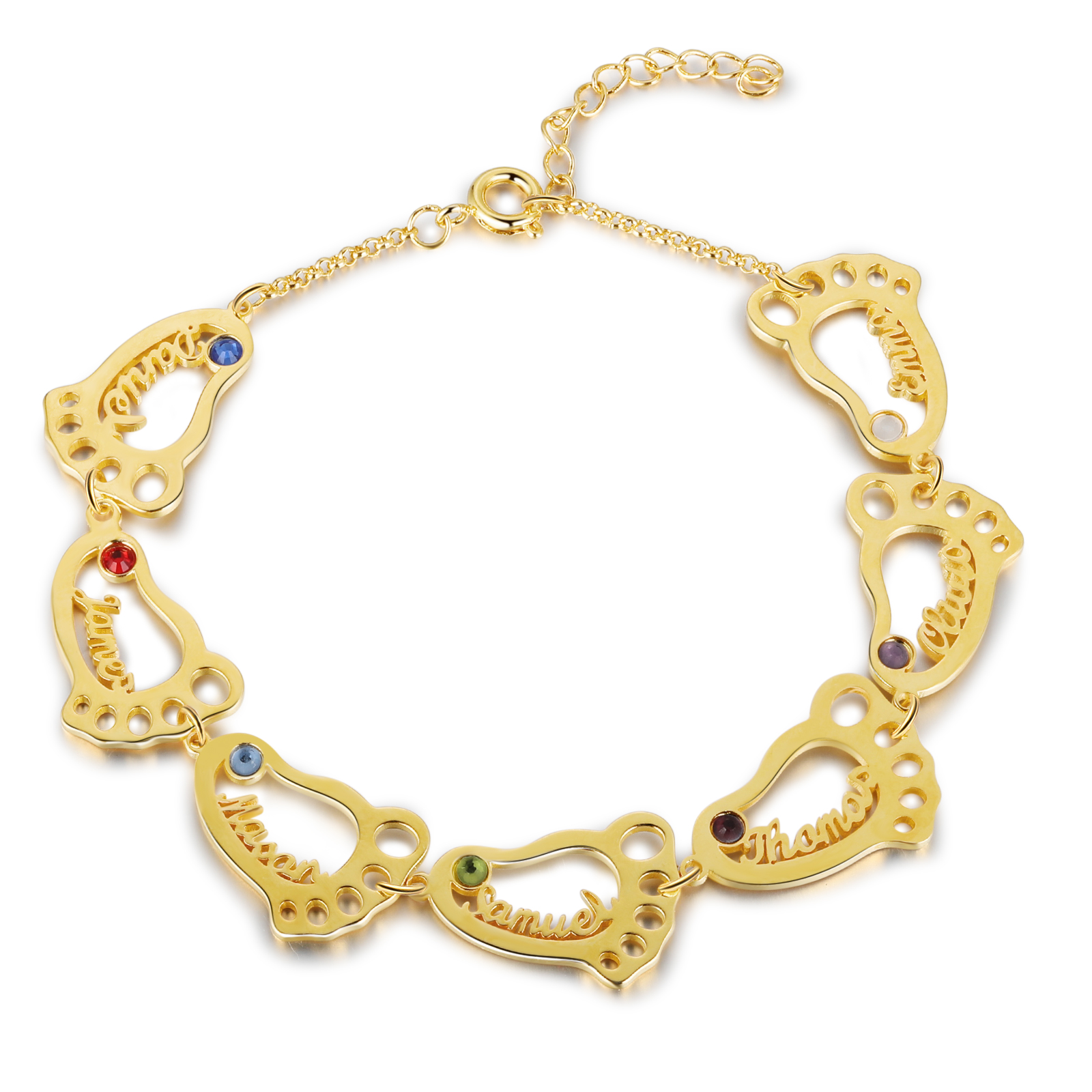 Personalisiertes Baby Füße 6 Namen Geburtssteine Armband