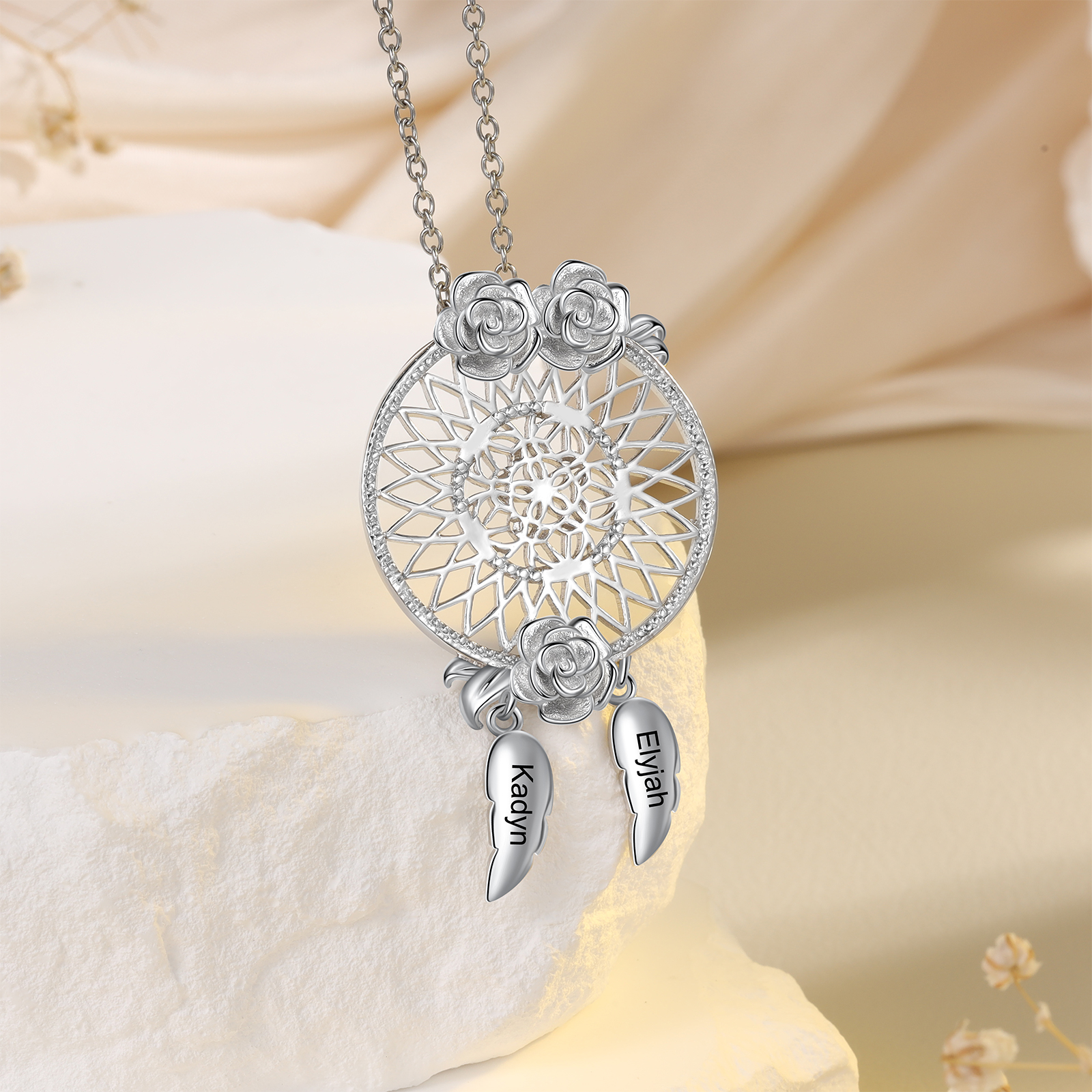 Personalisierbare 2 Namen Rose Traumfänger Halskette