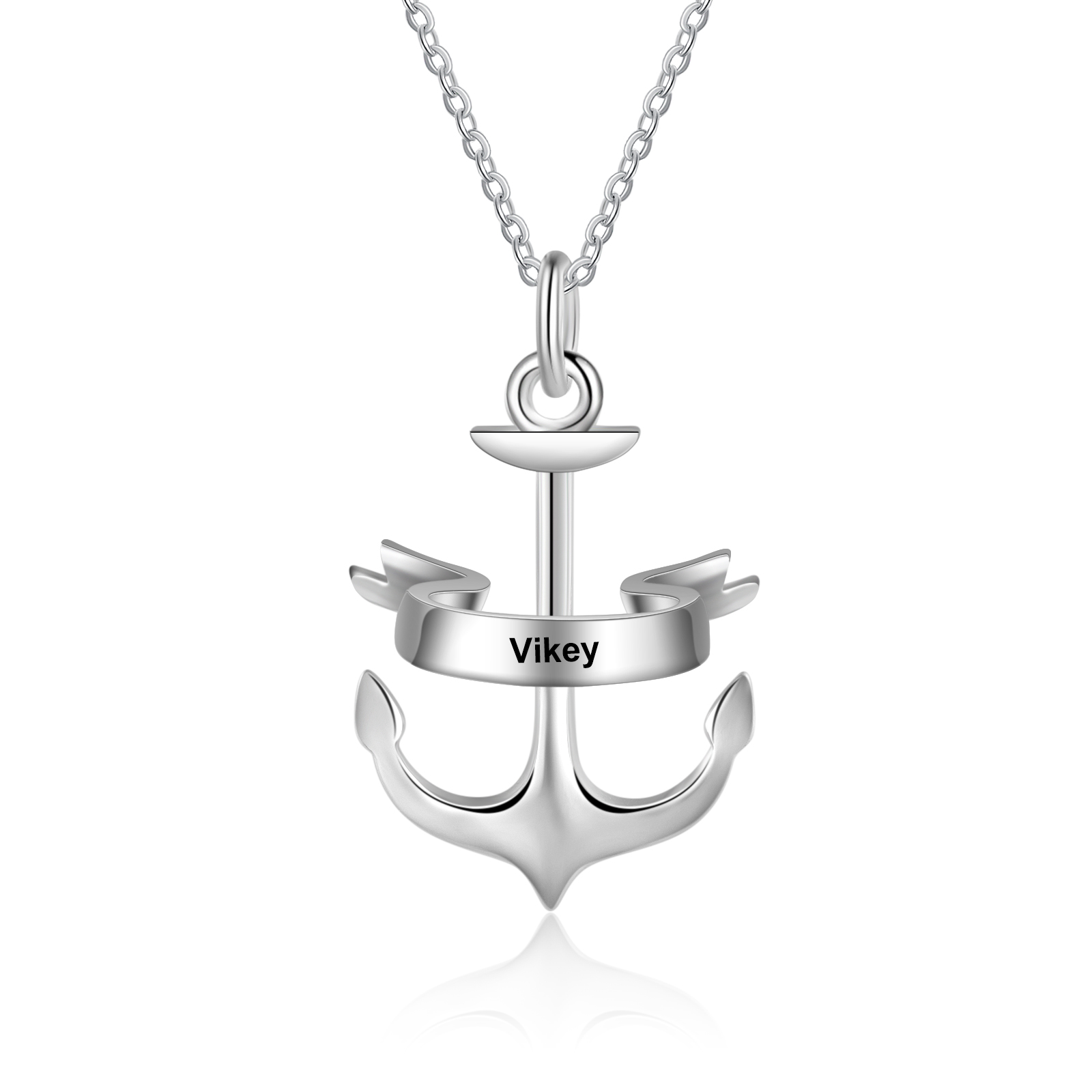 Personalisierte 1 Namen Halskette mit Anker Anhänger