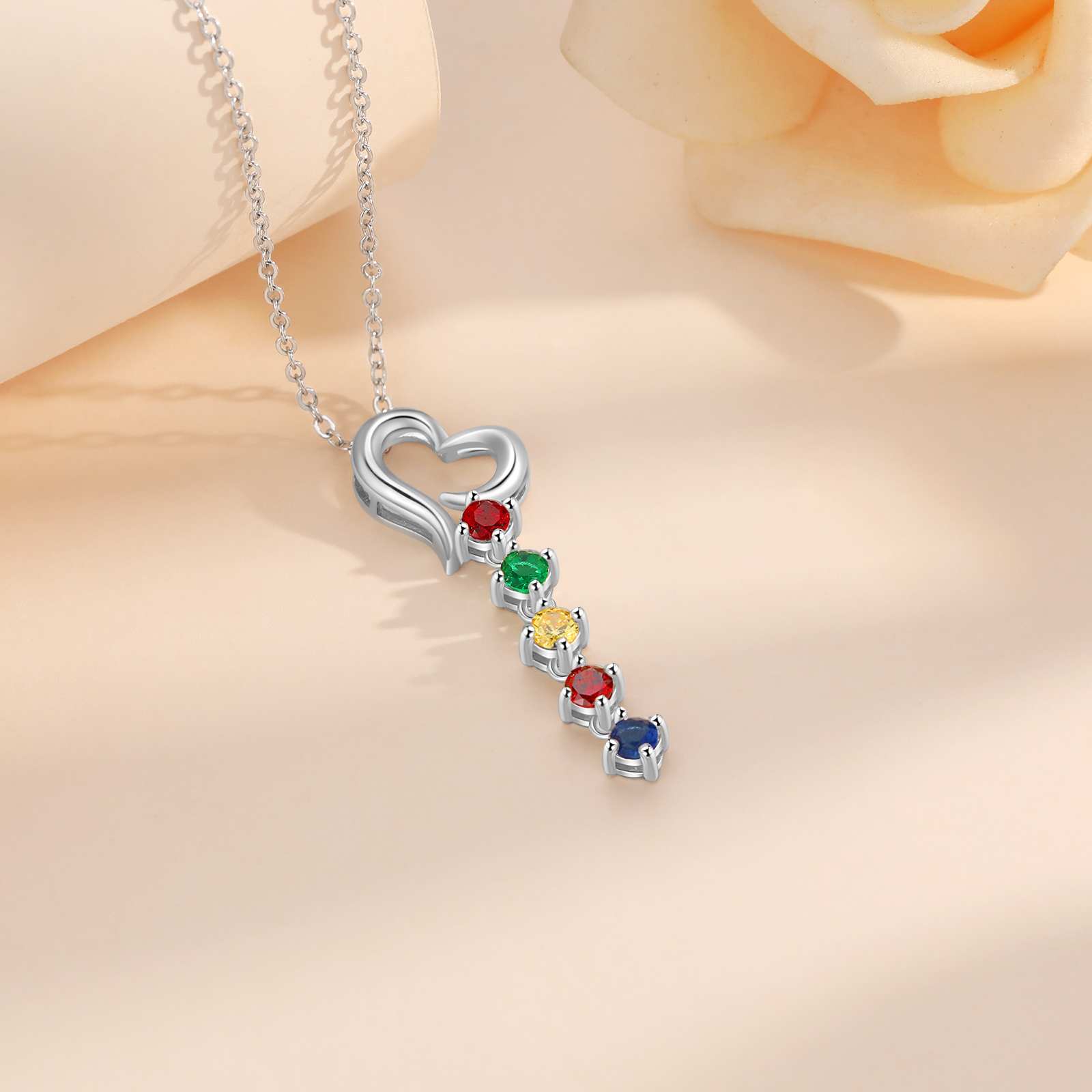 Personalisierte 5 Geburtssteine Herz Halskette für Großmutter