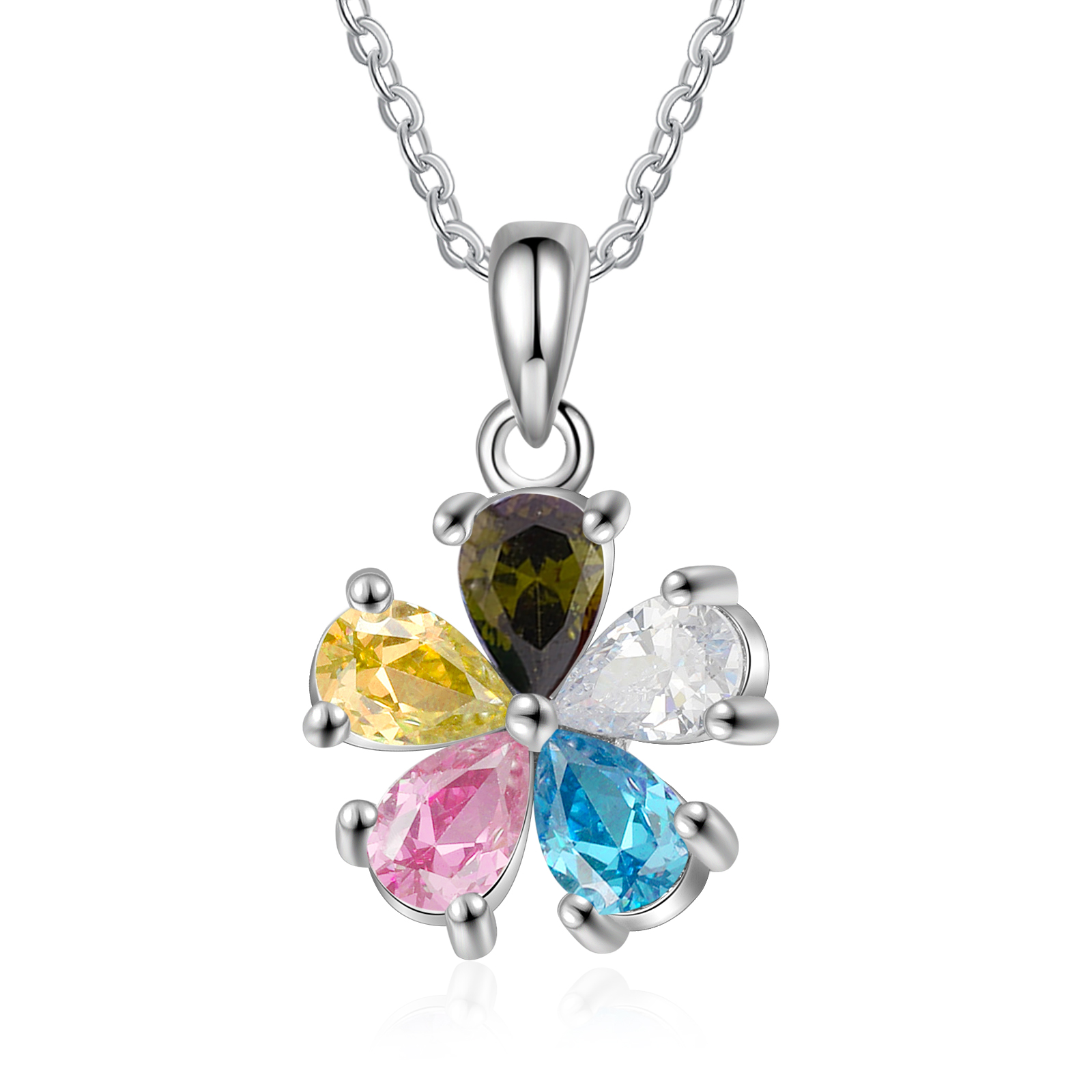 Personalisierte 2 Namen & Geburtssteine Tropfenform Halskette mit Zirkonia