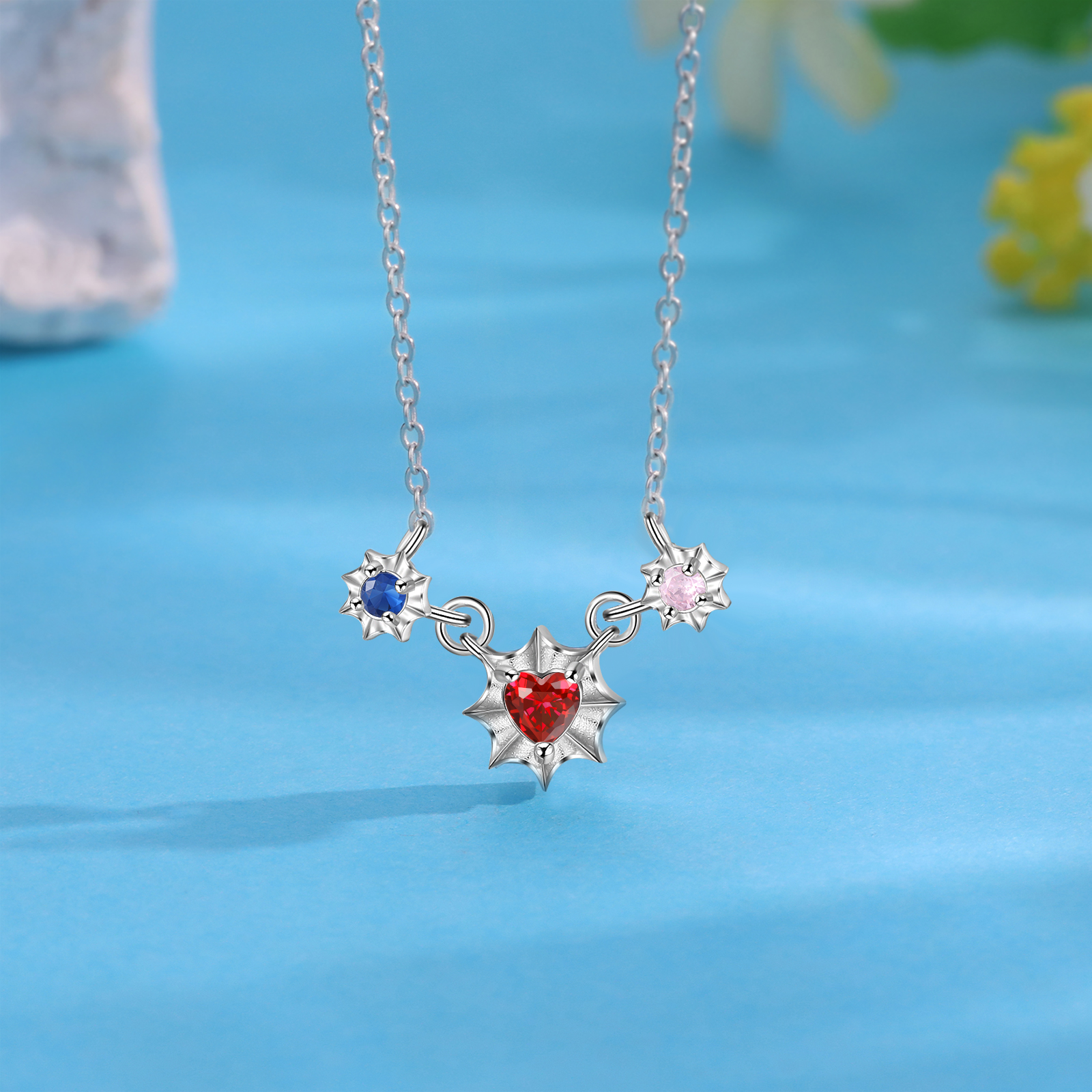 Personalisierte 3 Geburtssteine Herz Stern Halskette