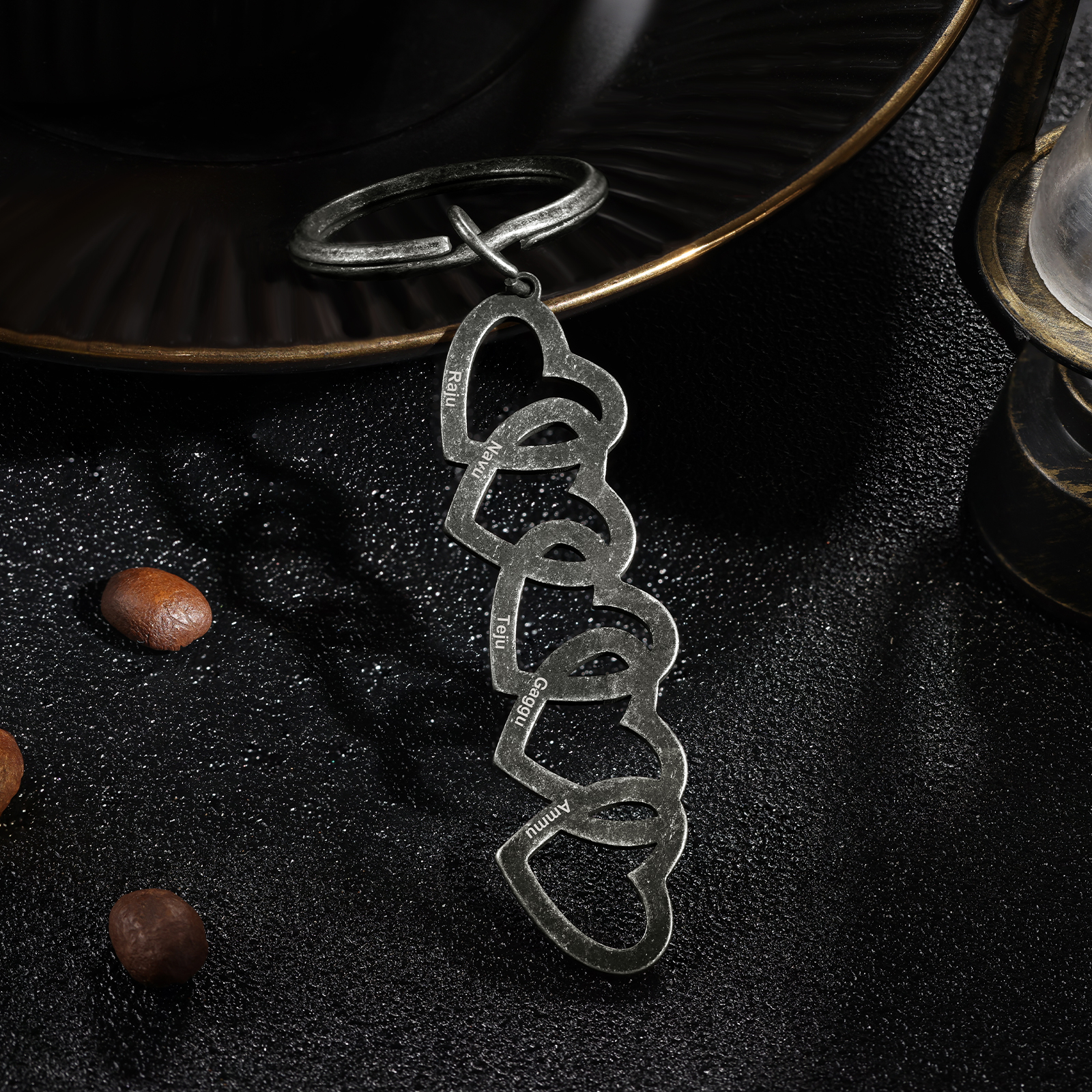 Personalisierbare 5 Namen Herz Vintage Edelstahl Schlüsselanhänger