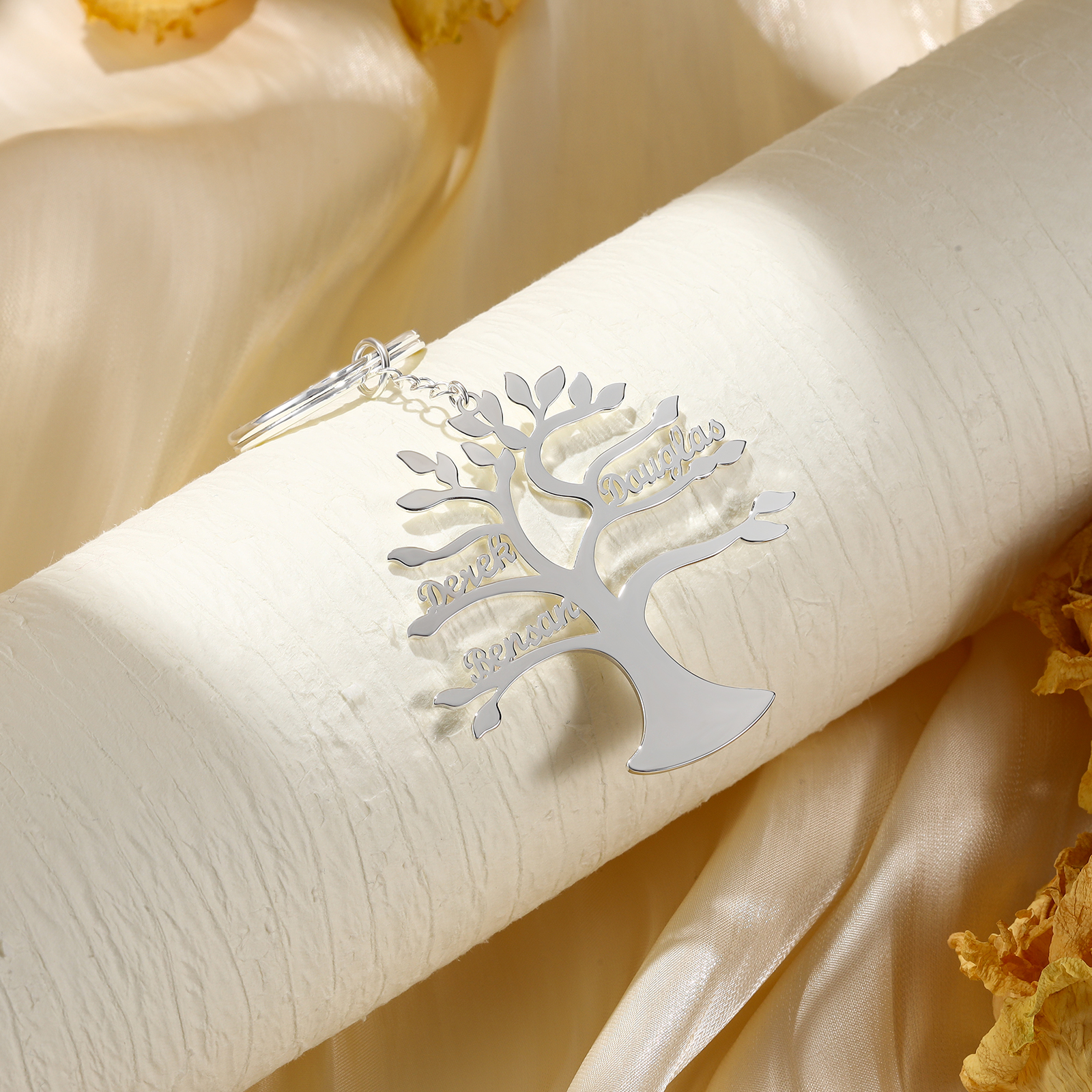 Personalisierbare 3 Namen Familienbaum Schlüsselanhänger