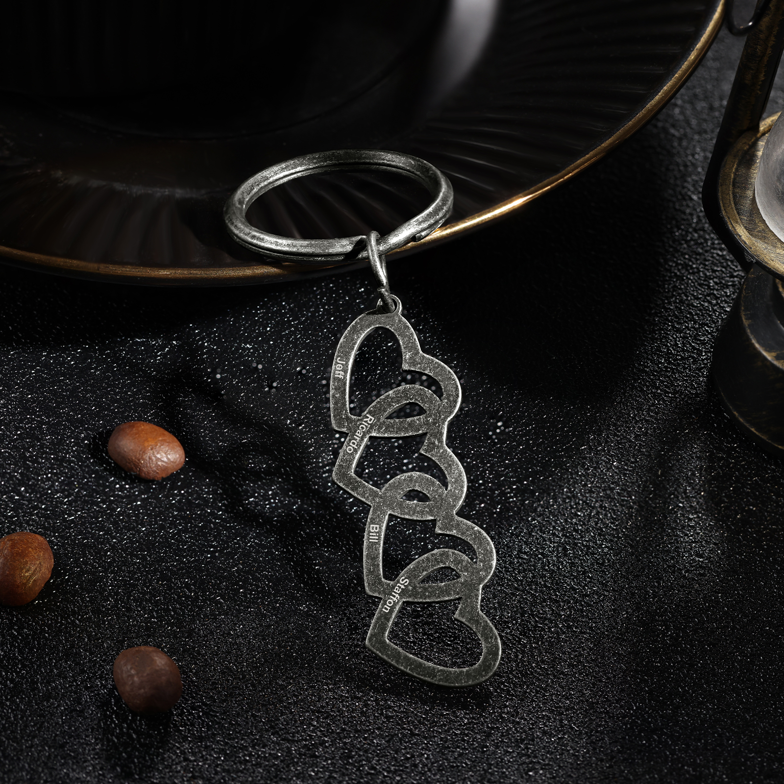 Personalisierbare 4 Namen Herz Vintage Edelstahl Schlüsselanhänger