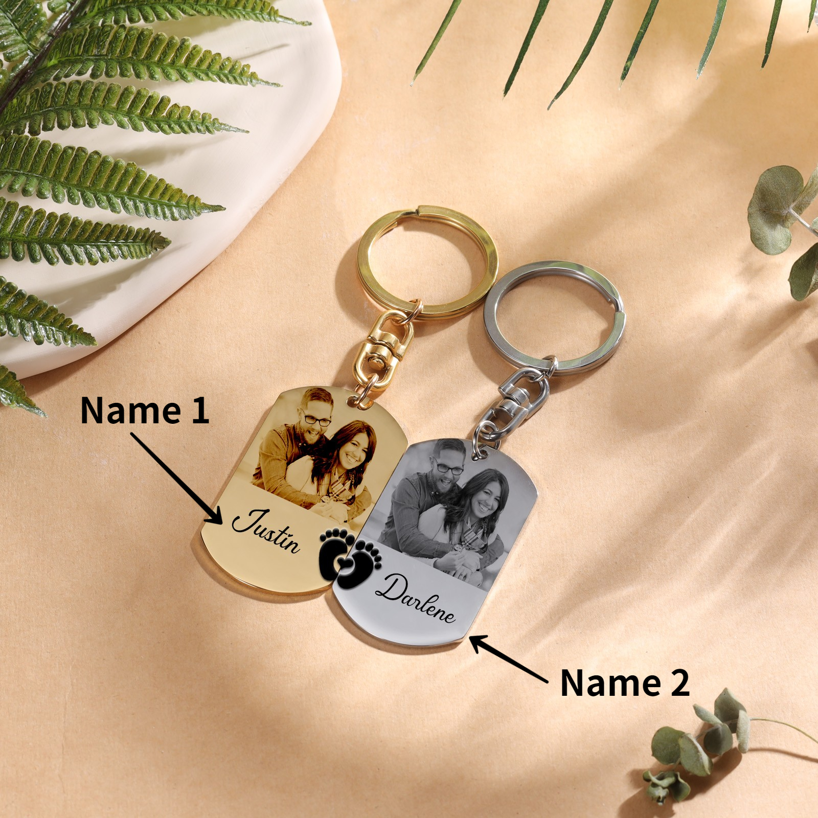 Personalisierbar 2 Namen & Datum & Foto Fuß zu Fuß Paar Metall-Schlüsselanhänger