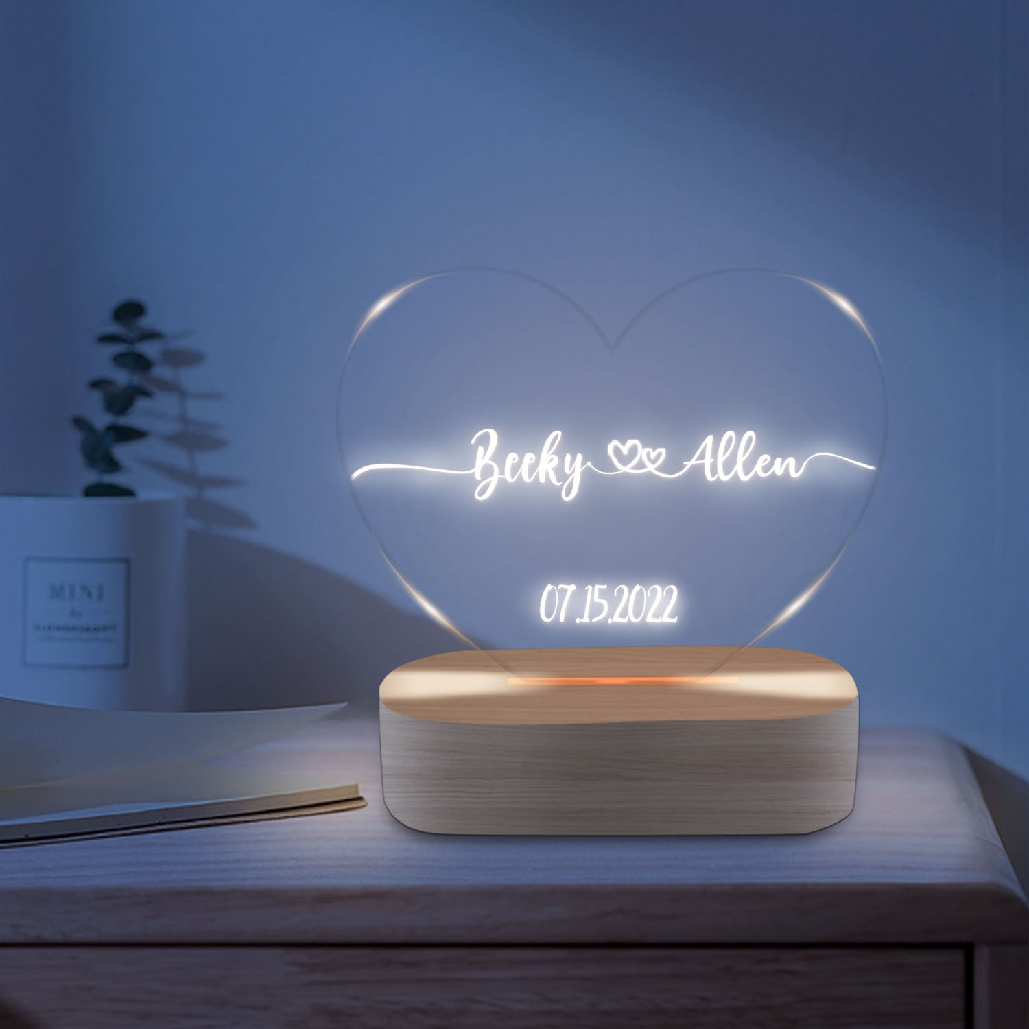 Personalisierte 2 Name & Datum Herz 3 Licht-Farbwechsel Nachtlicht für Paare